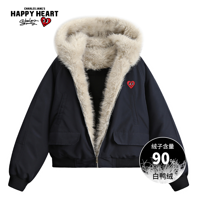 查尔斯桃心90%白鸭绒座山雕加绒加厚冬季 情侣连帽羽绒服外套 新款