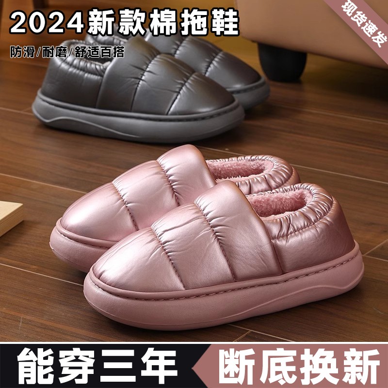 室内居家居厚底防滑情侣棉鞋 防水棉拖鞋 2025新款 秋冬季 女外穿 男款