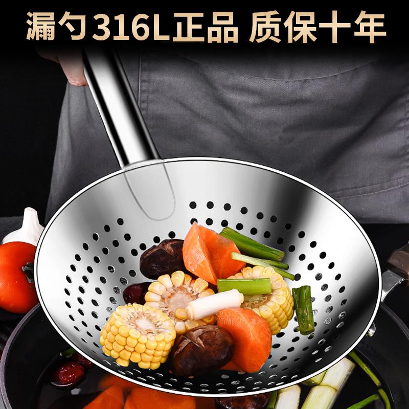 漏勺316不锈钢捞勺加厚油炸过滤网筛漏网商用油盆厨房特大号笊篱