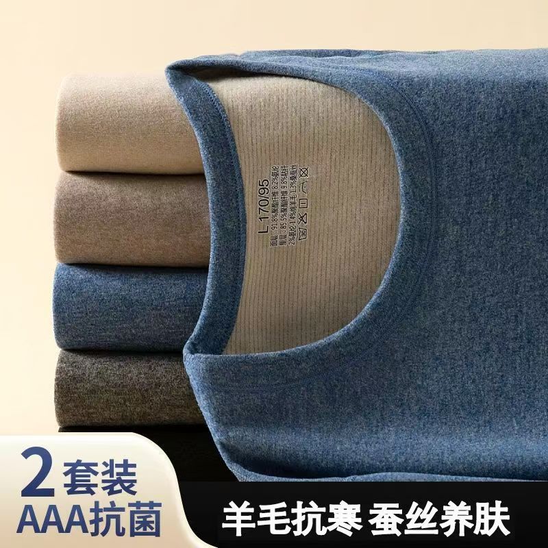 套装 COBI保暖内衣男款 羊毛蚕丝秋衣秋裤 2025新款 加绒加厚德绒大码