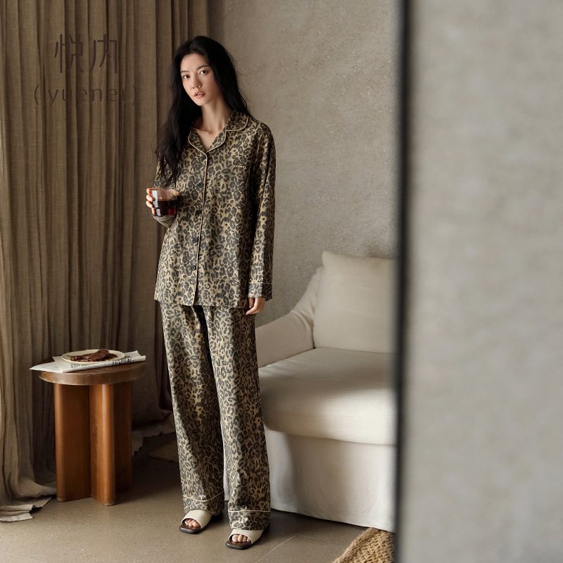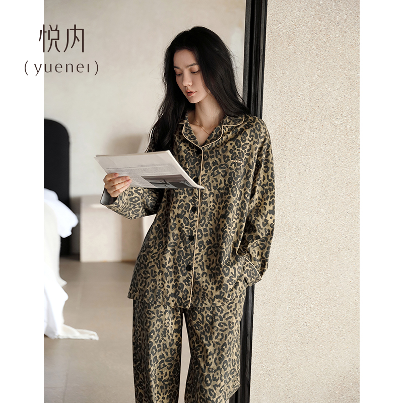 春秋款 休闲高级感豹纹套装 纯棉长袖 大码 家居服时尚 悦内睡衣女秋季