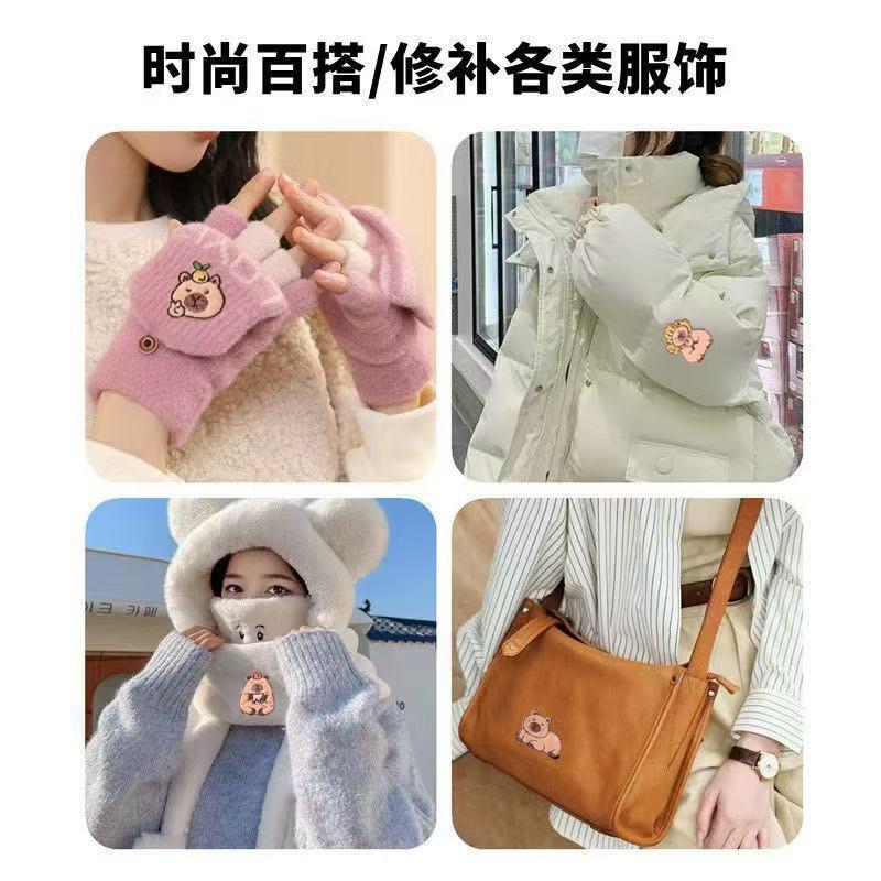 卡皮巴拉羽绒服刺绣卡通补丁贴自粘免缝可水洗衣服破洞修复修补贴