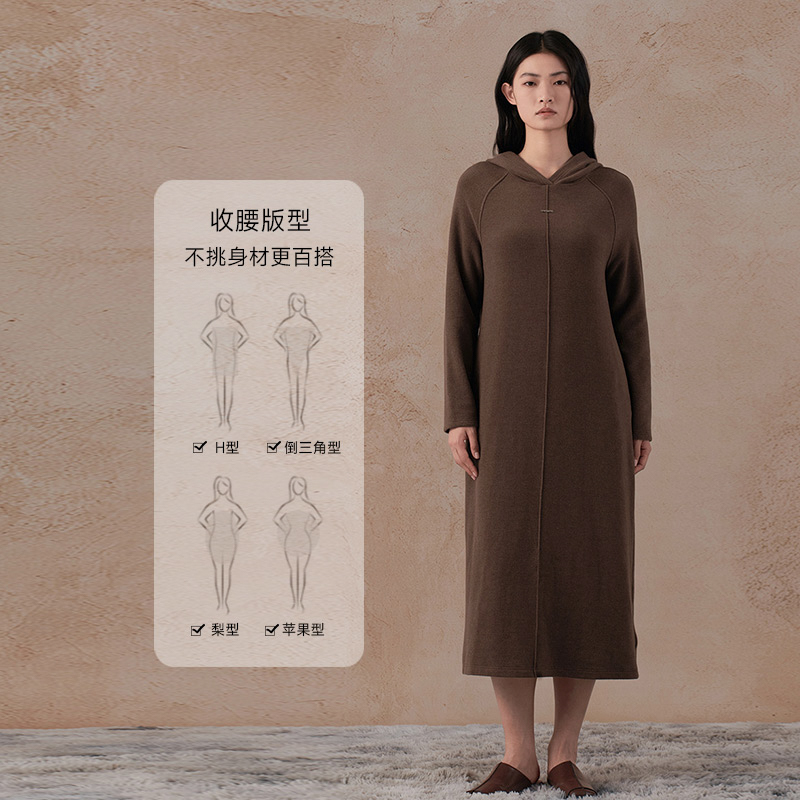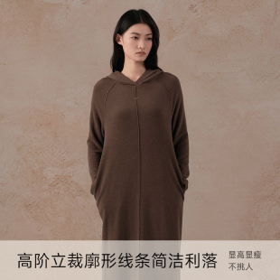 莱茵福莱尔绵羊毛蝴蝶结圆领连衣裙深灰宽松气质典雅设计感25冬新