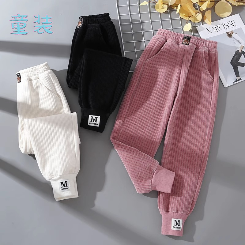 百搭宽松休闲哈伦裤 2025秋冬新款 子 女条纹拼接束脚运动裤 欧货卫裤