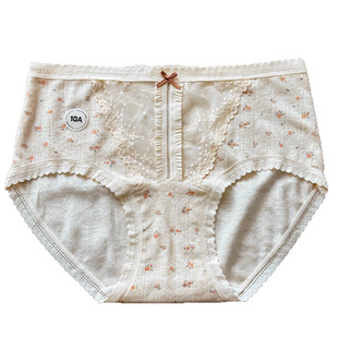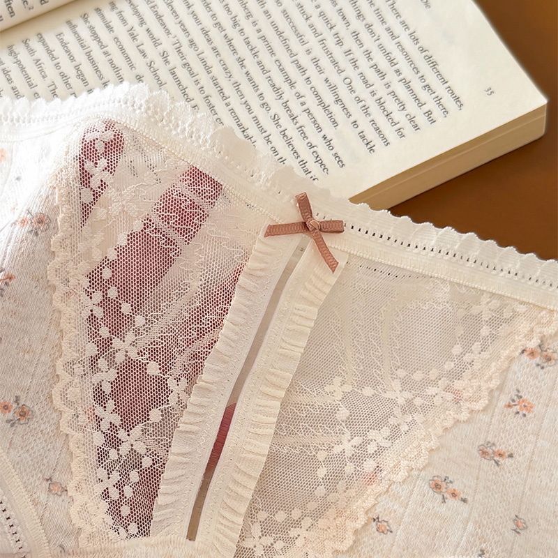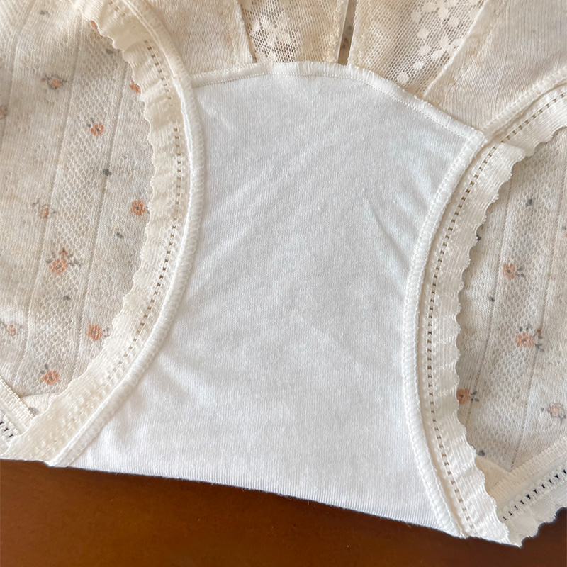 中腰内裤 女莫奈花园性感镂空蕾丝纯欲A类纯棉加长裆10A抑菌三角裤