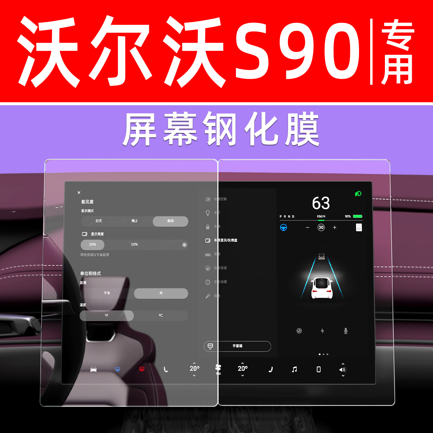 26款 沃尔沃S90汽车屏幕钢化膜中控导航车机贴膜内饰显示大屏保护