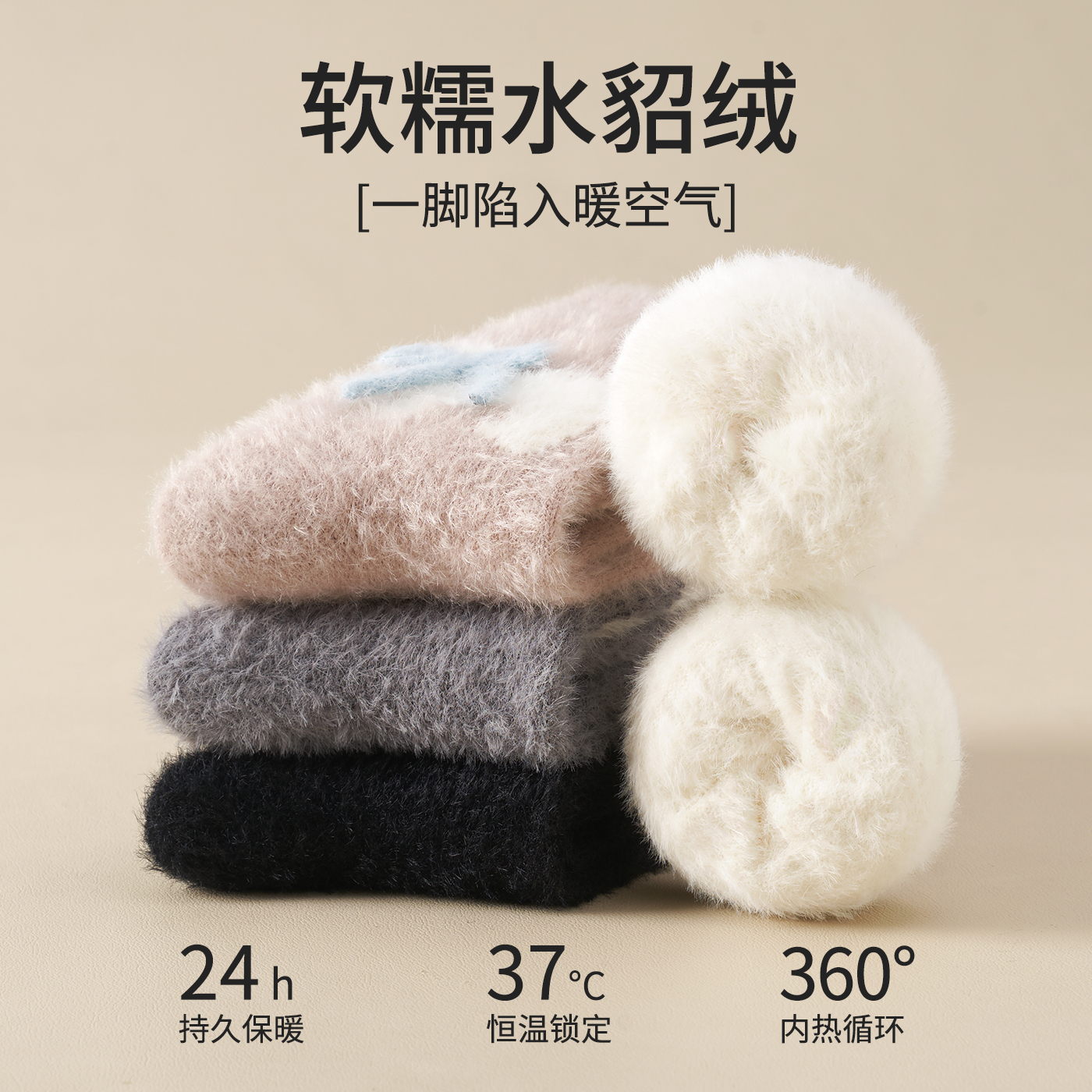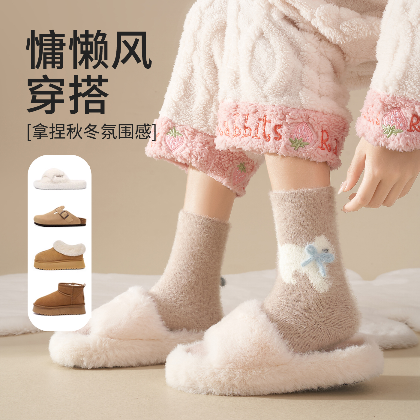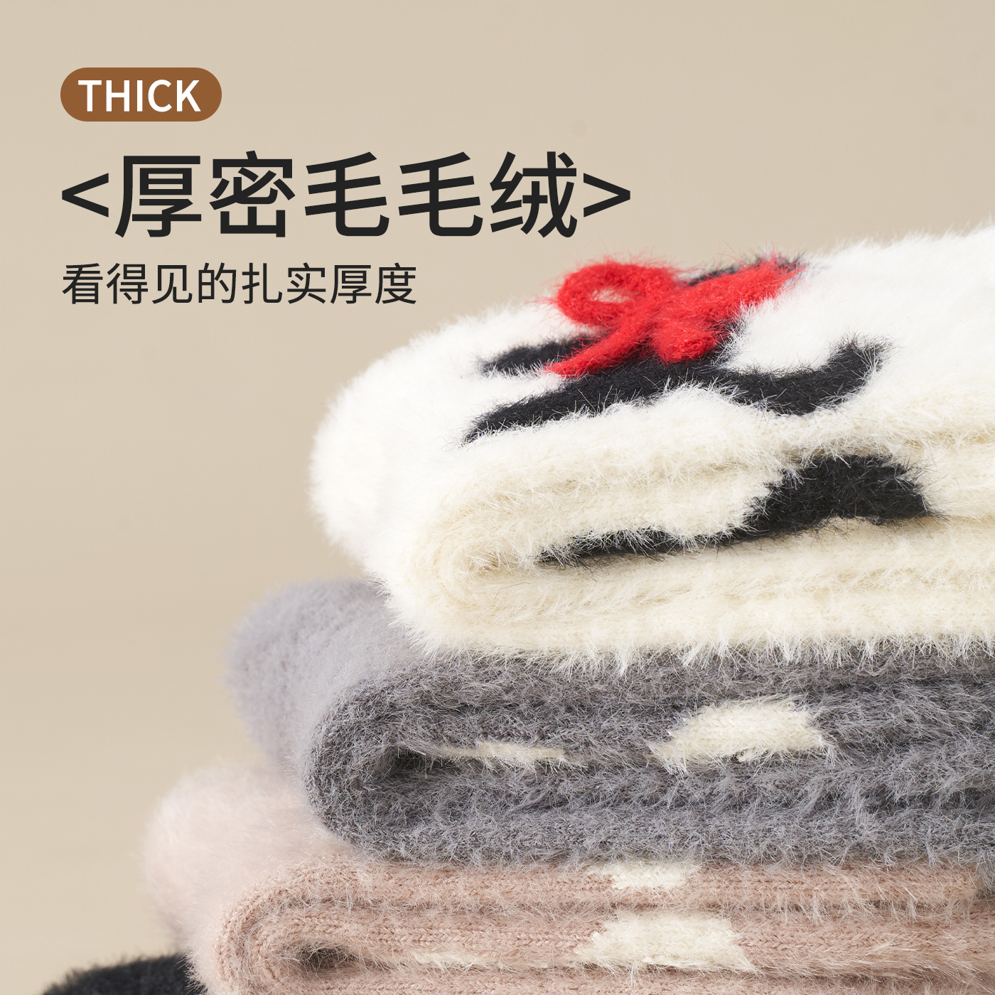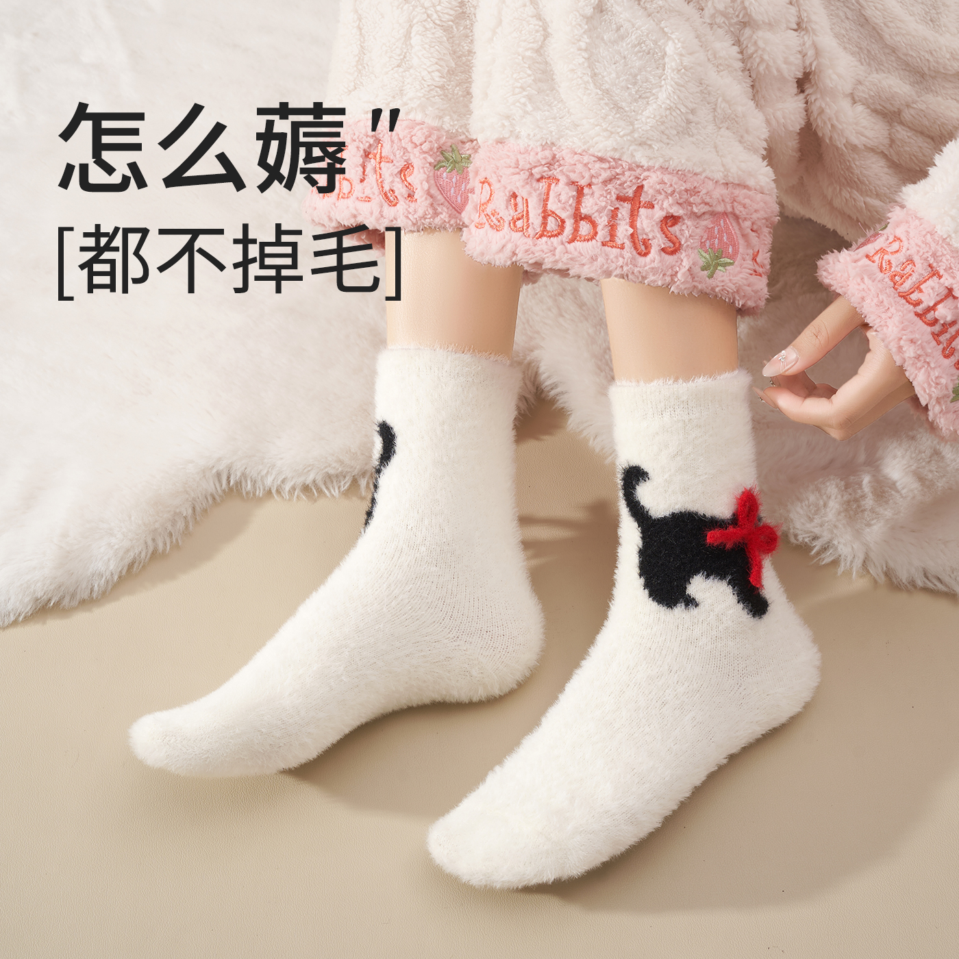 可爱水貂绒袜子女秋冬款 加绒加厚产后月子袜保暖居家珊瑚绒中筒袜