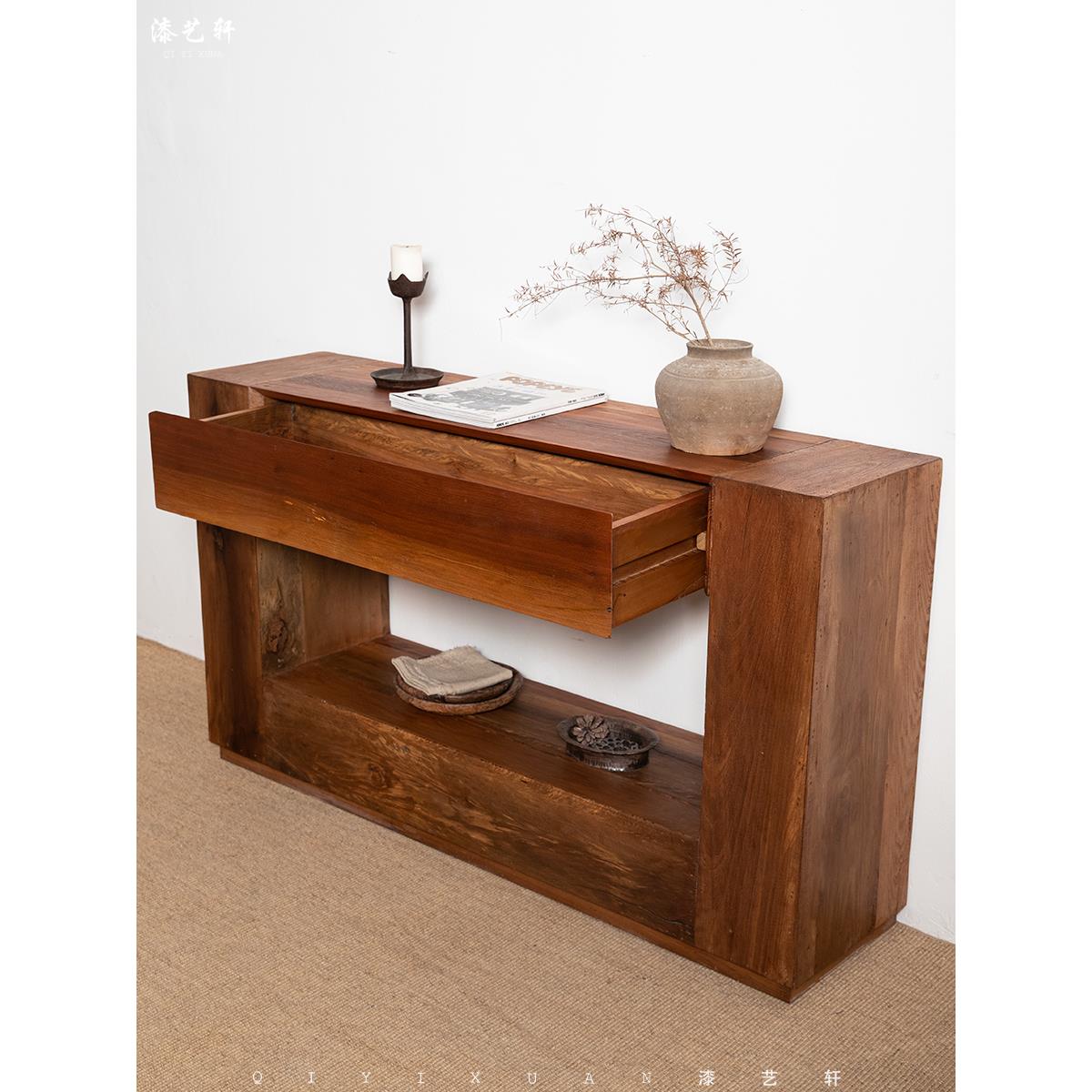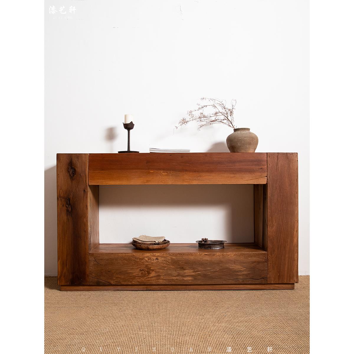 中古禅意玄关柜入户实木装 饰柜侘寂风老木靠墙摆设壁炉柜复古条案