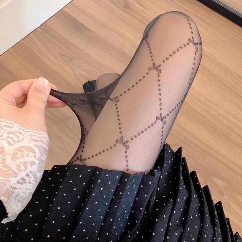秋冬米白色丝袜薄款 袜提花黑丝女1013z 甜美lolita蝴蝶结奶白连裤