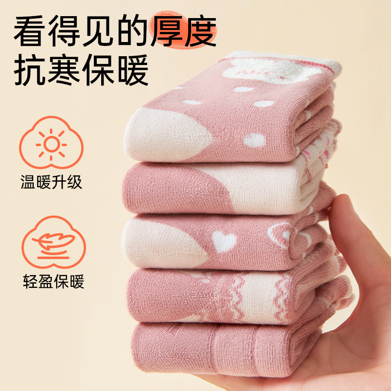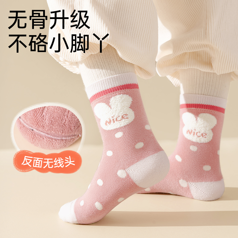 女童保暖毛圈袜儿童冬季 棉袜 加绒加厚抗寒高筒袜女孩女宝宝秋冬款
