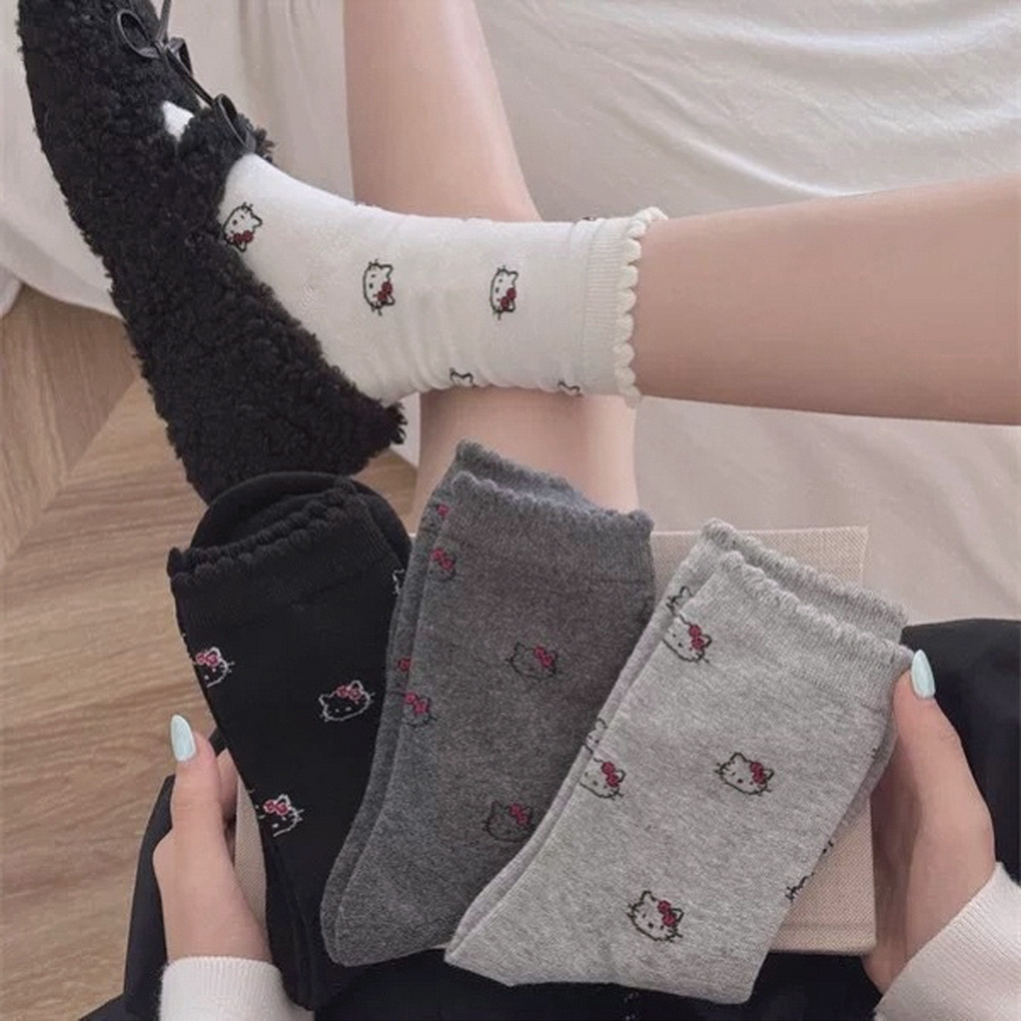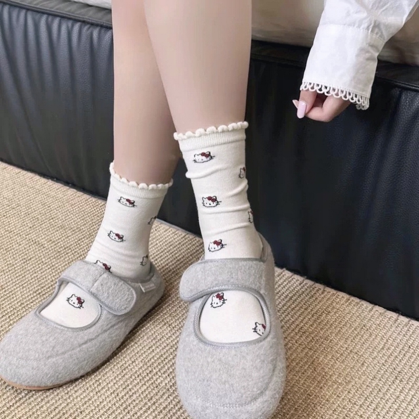 纯棉中筒棕咖色堆堆袜配勃肯鞋 2025新款 长袜 秋冬季 木耳边袜子女款