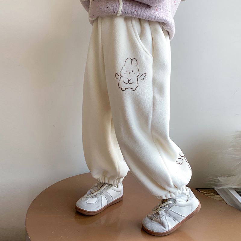 休闲百搭长裤 女童加绒保暖裤 新款 女宝秋季 可爱卡通小兔子印花卫裤