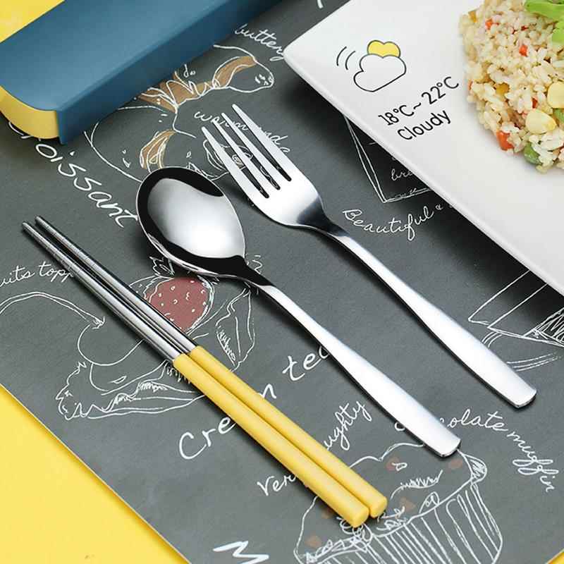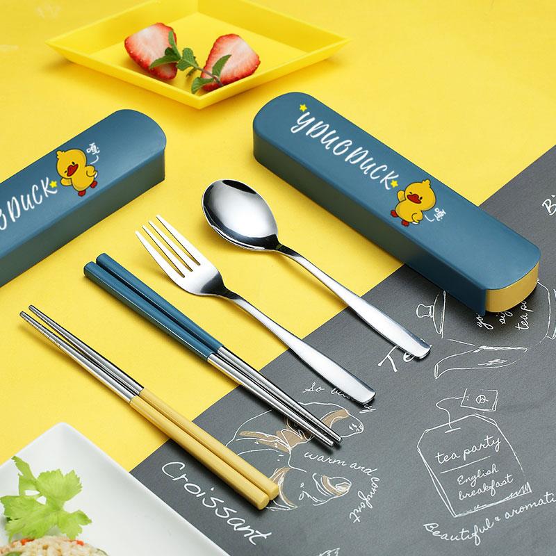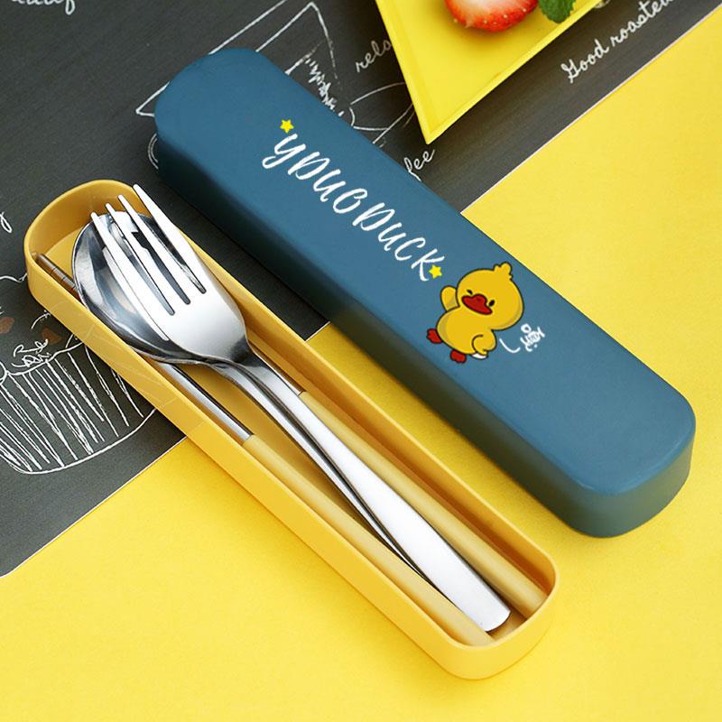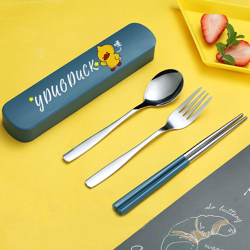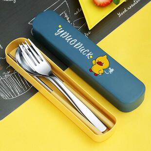 不锈钢筷子收纳盒单人装 学生一人用三件套可爱竿 勺子便携餐具套装