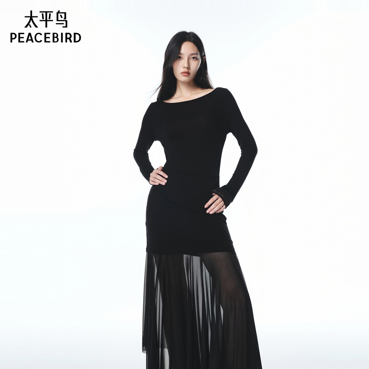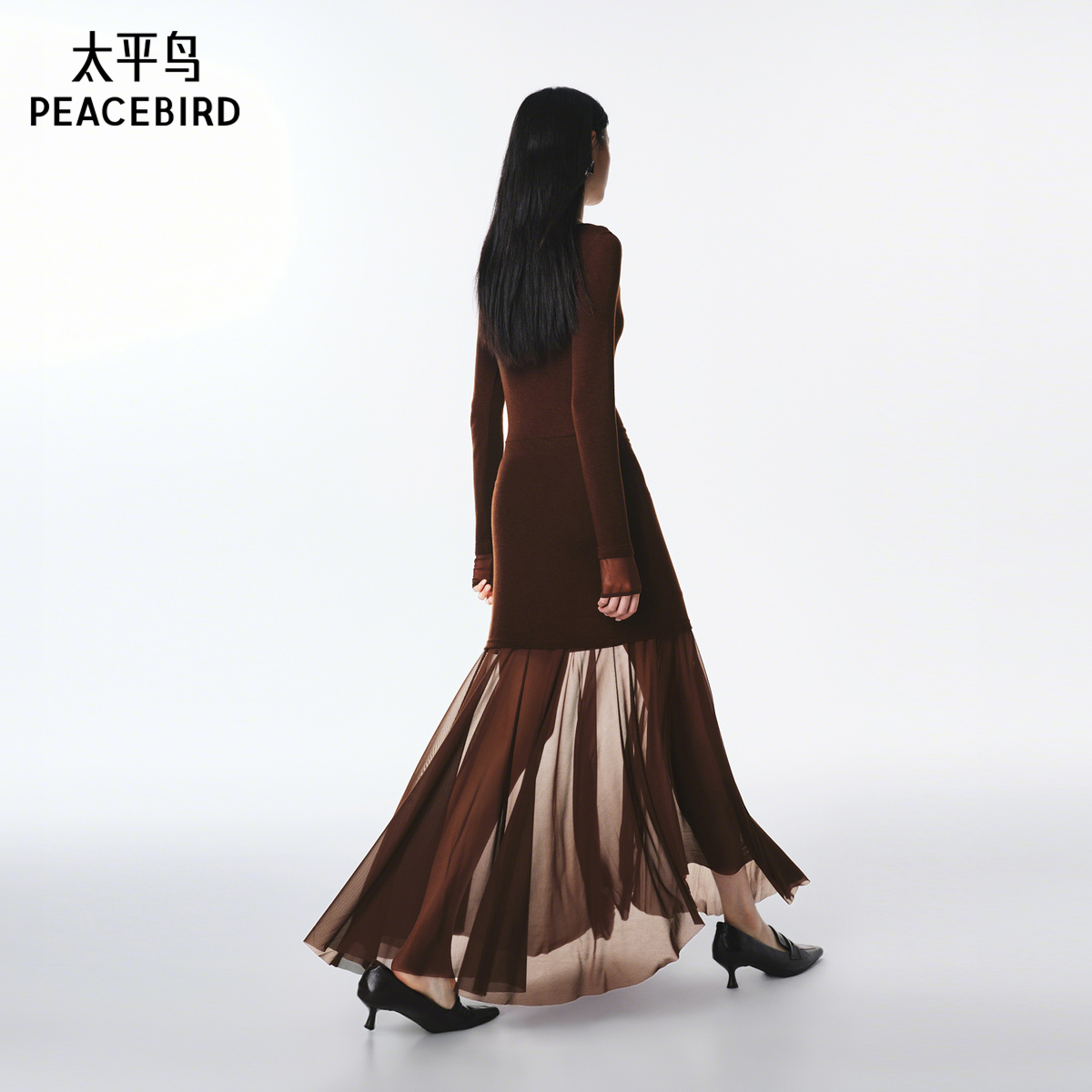 A3FAF3263 太平鸟莱赛尔绵羊毛混纺针织连衣裙女长袖 商场同款