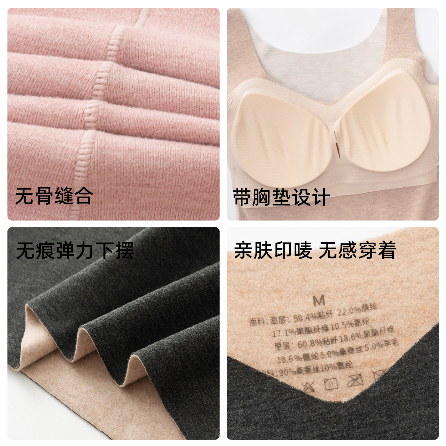 上衣女士 梦芭蒂带胸垫秋冬保暖背心女加绒打底裤 胡可双11