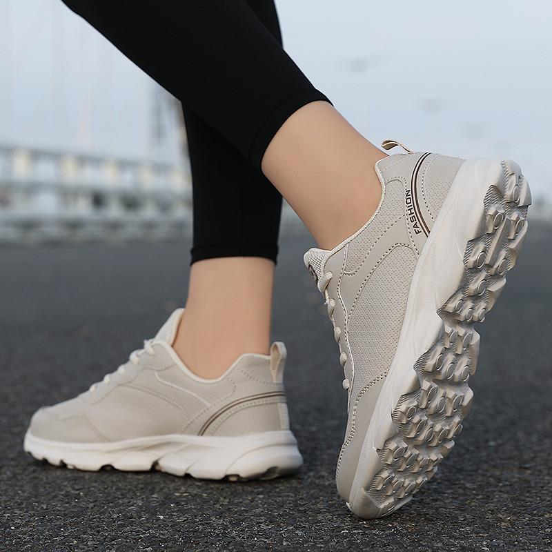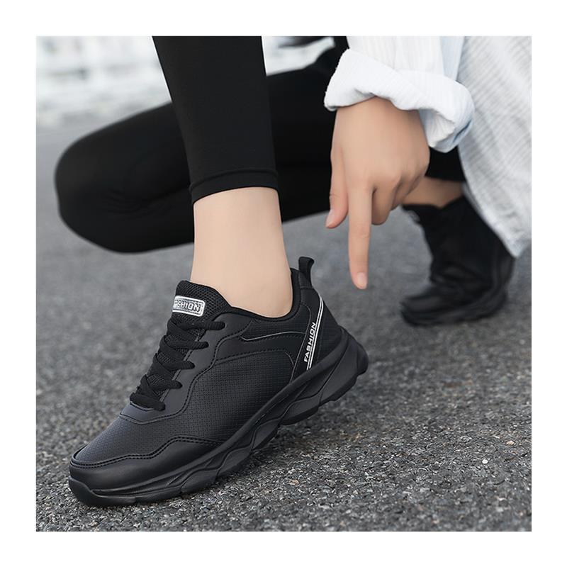 休闲旅 黑色百搭软底女鞋 高货轻便运动鞋 女秋秋皮面防水防滑跑步鞋