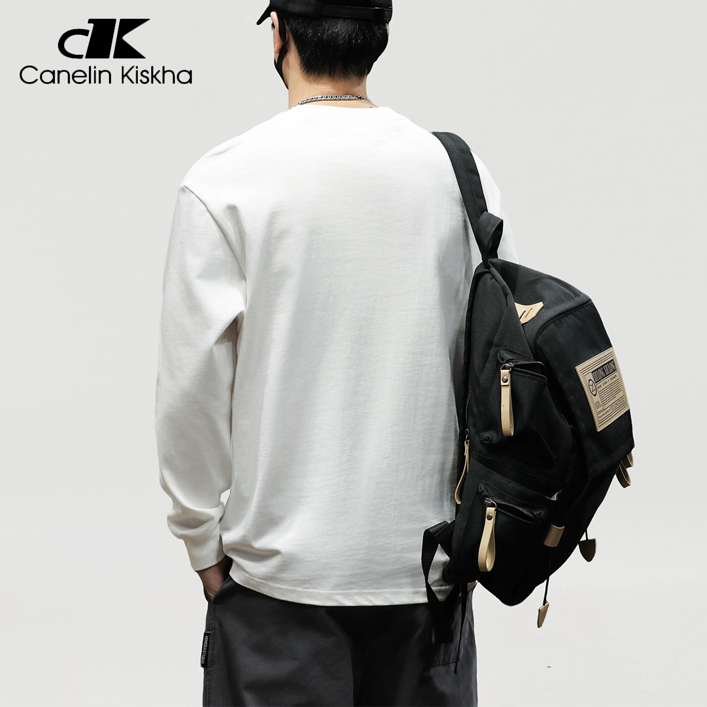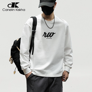 t恤男士 重磅纯棉长袖 秋季 新款 Canelin 潮流上衣服男款 Kiskha美式