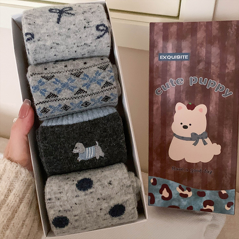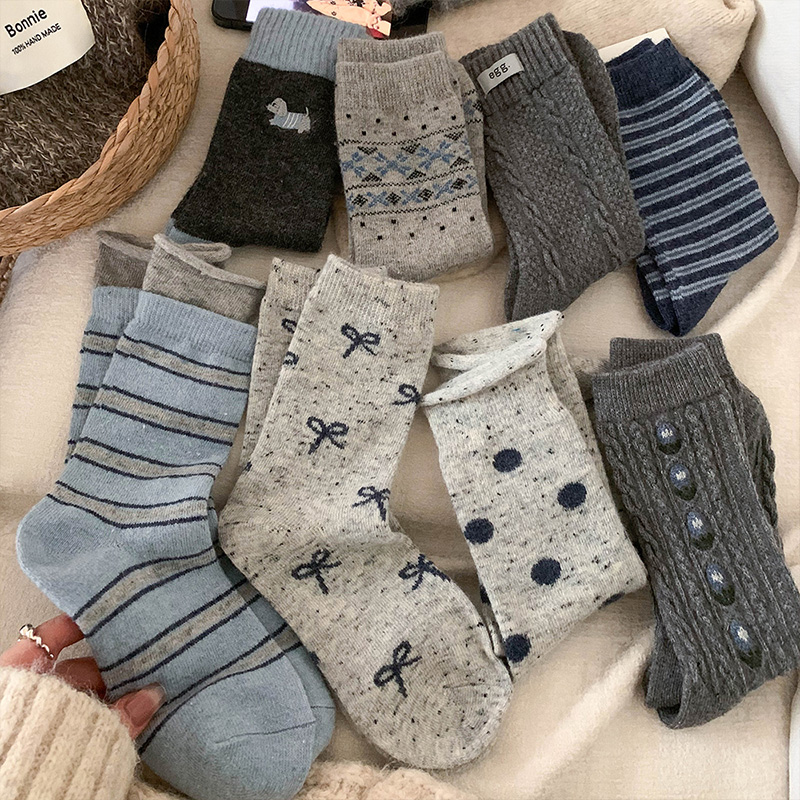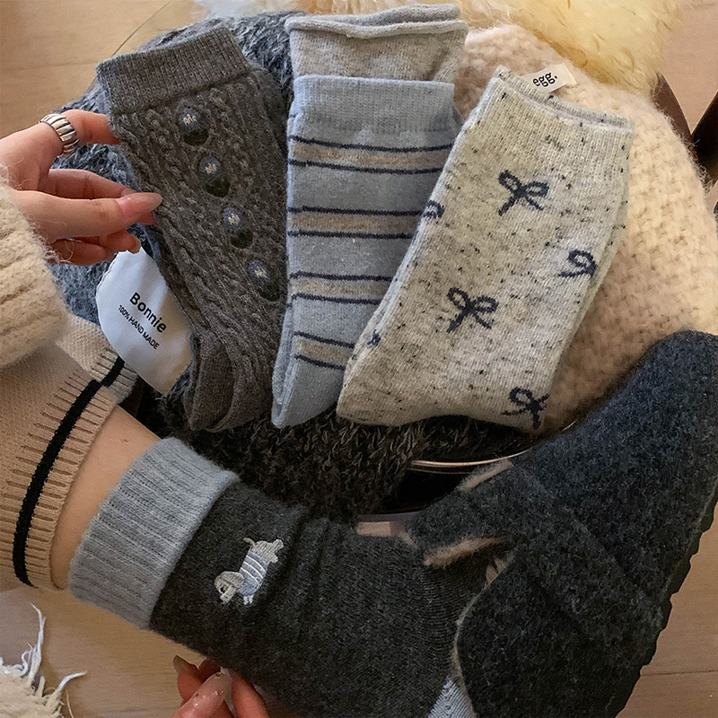 加厚保暖ins潮条纹波点蝴蝶结长袜 新款 灰色袜子女款 中筒袜春秋季