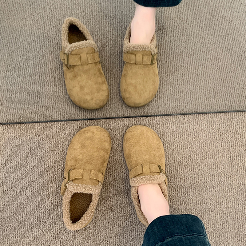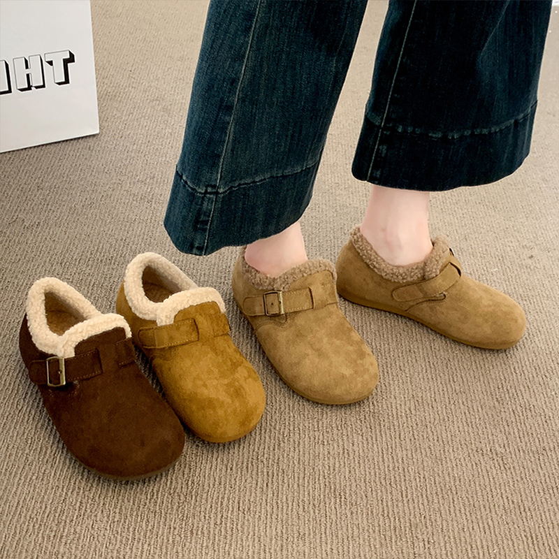 子毛毛棉鞋 加绒勃肯鞋 豆豆乐福鞋 秋冬季 保暖低帮雪地靴 女2025新款