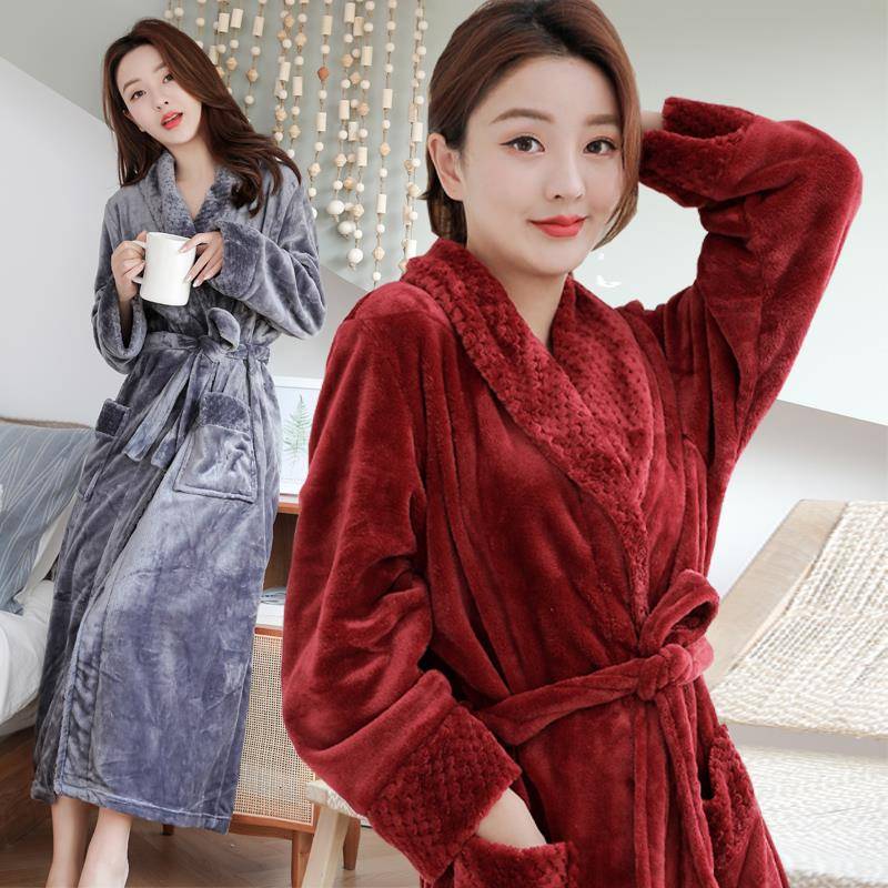 秋冬长睡袍女冬保暖情侣加厚浴袍男士 宽松法兰绒一对1009c 加大码