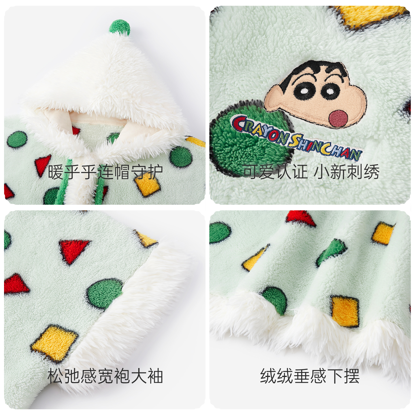 蜡笔小新珊瑚绒斗篷式 加绒加厚可外穿连帽睡衣披风浴袍 睡袍女冬季