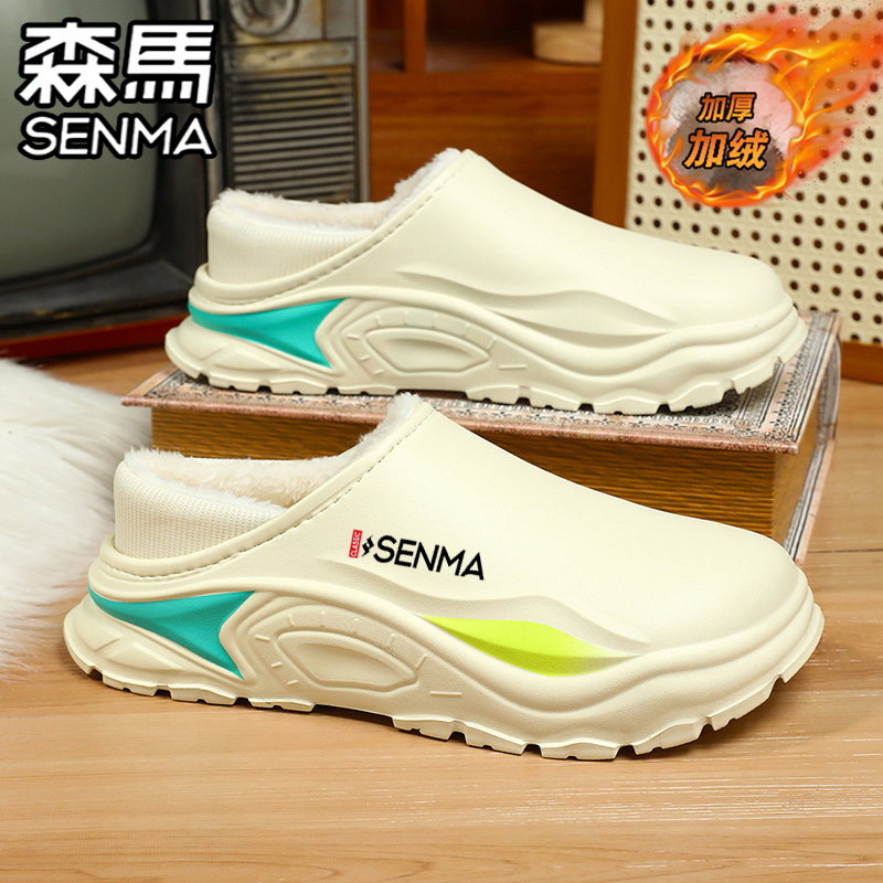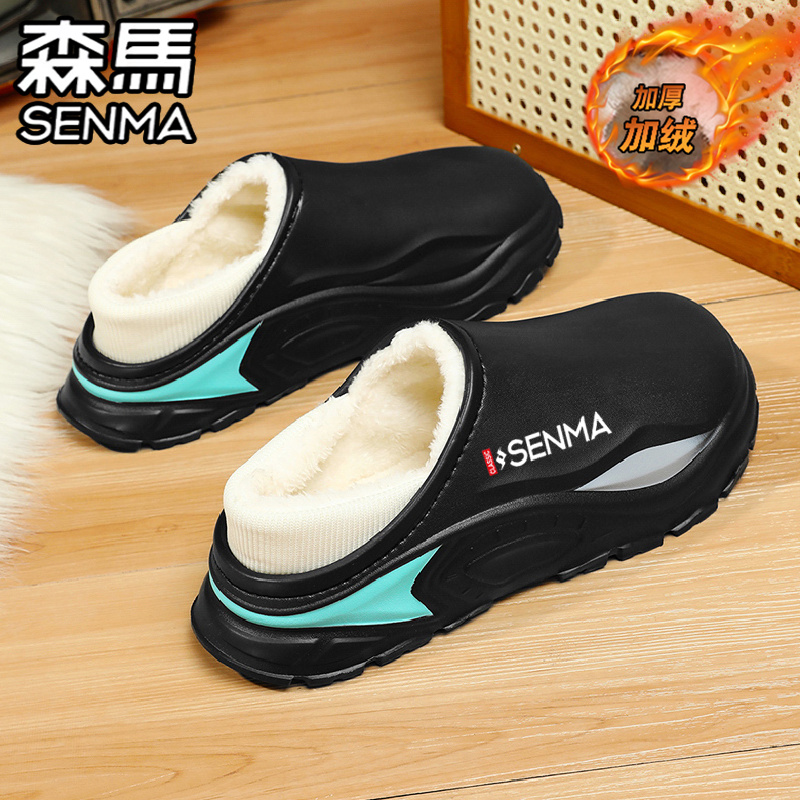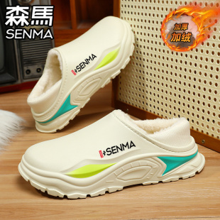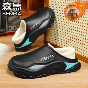 踩屎感防水防滑包头拖鞋 森马棉拖鞋 加绒保暖加厚包跟棉鞋 冬季 男款