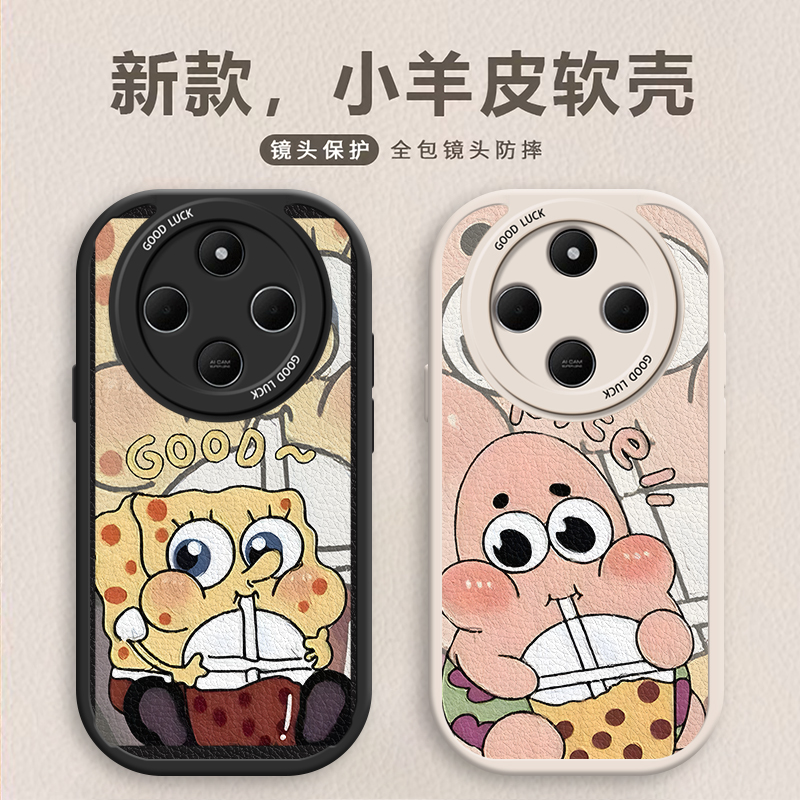 海绵宝宝适用红米134G国外版 手机壳派大星14C5G挂绳14R5G好看斜跨14C4G少女卡通图案可爱保护壳