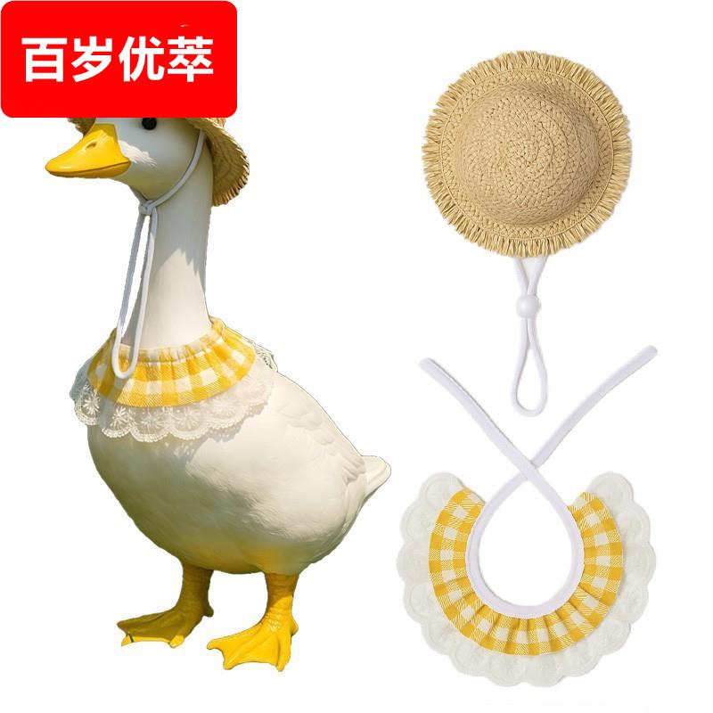 饰品 郊游装 科尔鸭特领草帽宠物大白鹅鸭春夏田园风格 门廊服装