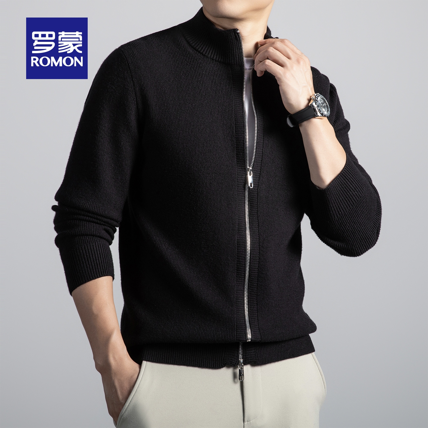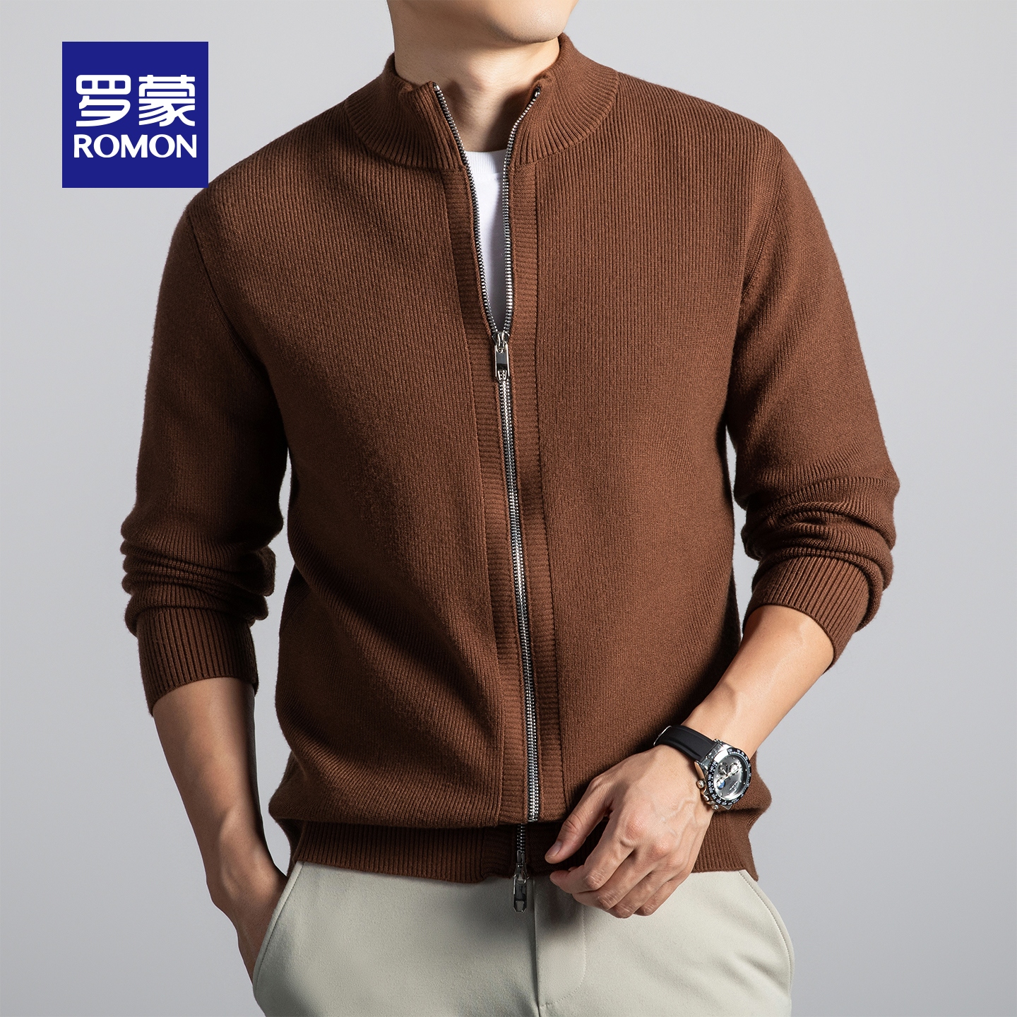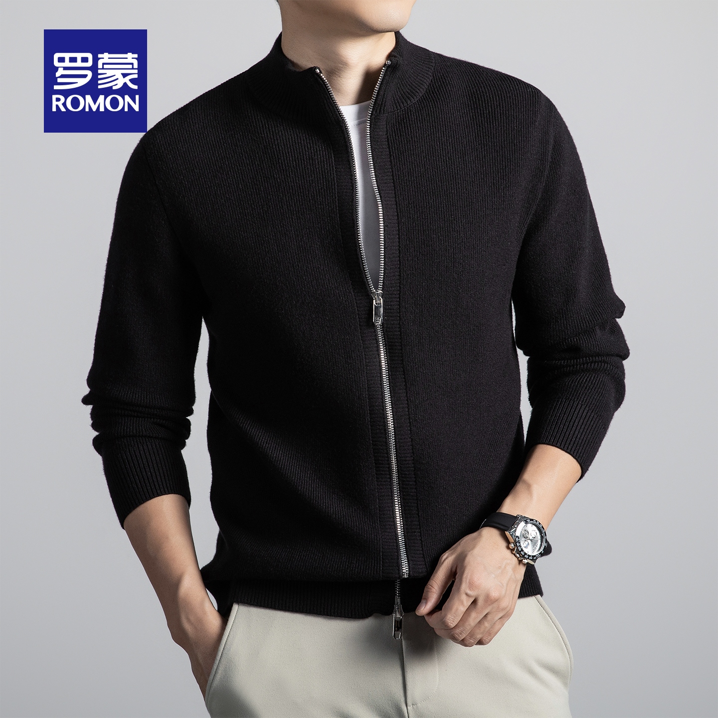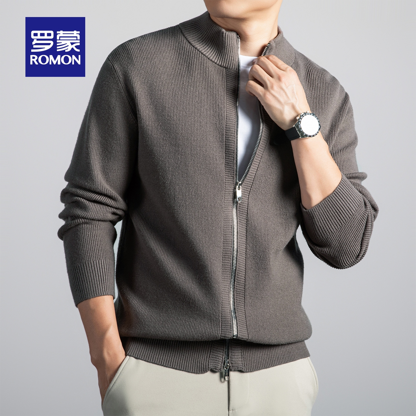 修身 百搭纯色拉链开衫 爆款 秋冬季 毛衣外套男立领半高外搭 男针织衫