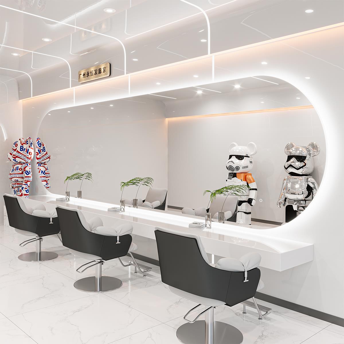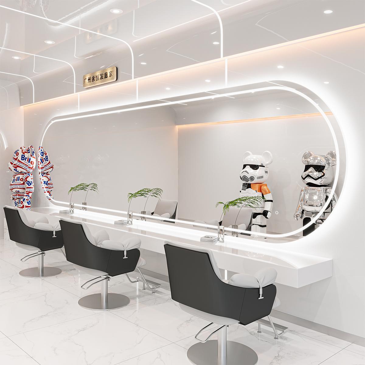 美发店镜子发廊专用大通镜理发店镜台烫染区镜台长镜网红剪发镜带