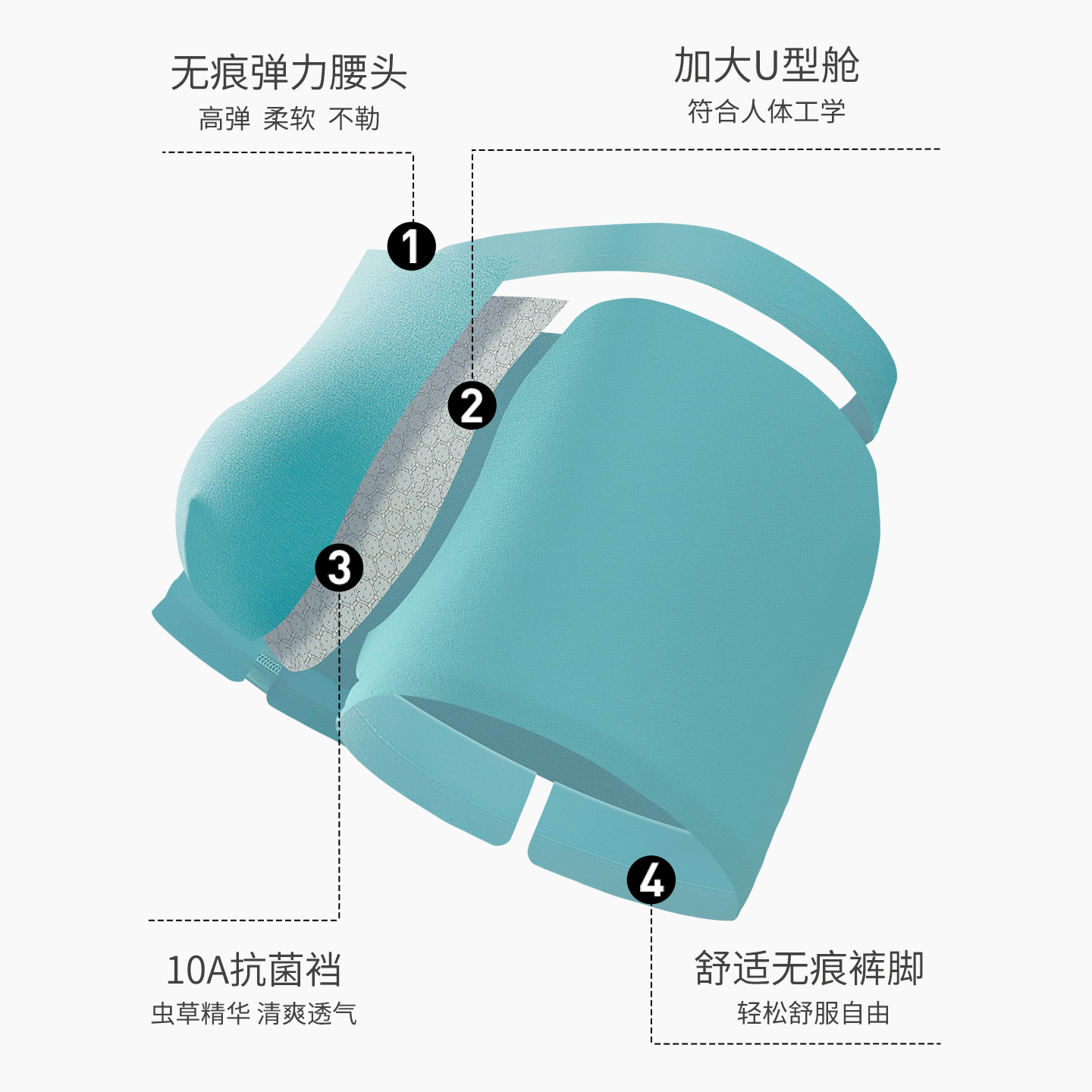 裤 抑菌內裆无痕透气凉感薄款 衩平角抗菌无感丝滑轻薄 冰丝内裤 男士