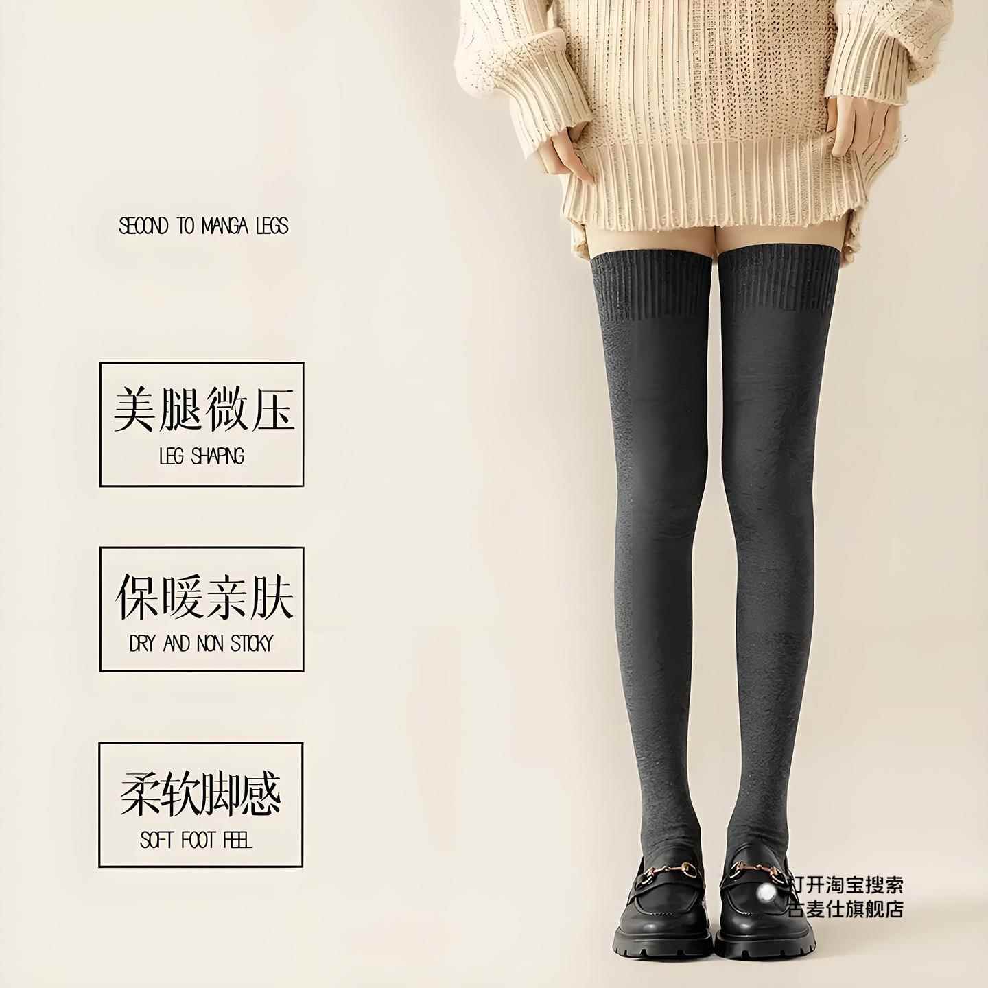 压力过膝袜女秋冬加长保暖大腿袜长袜加厚防滑长筒 加长过膝袜