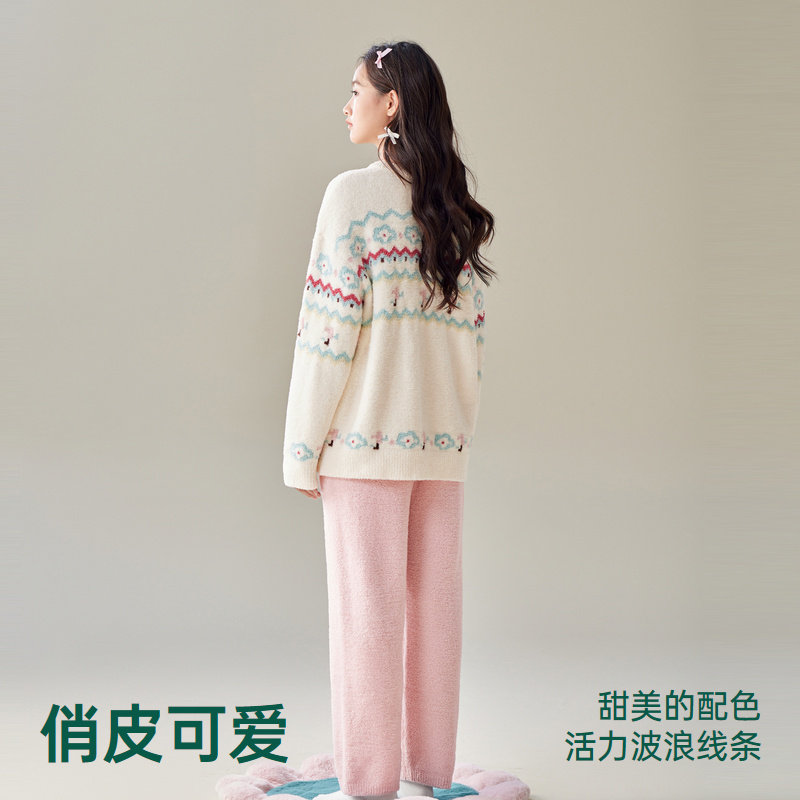 秋冬季 半边绒睡衣女冬款 加厚珊瑚绒可外穿家居服 巨保暖 安之伴