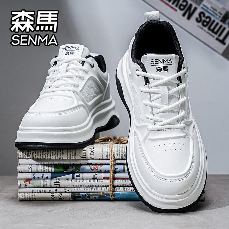 2025新款 真皮软底增高小白潮鞋 秋季 男士 运动休闲低帮板鞋 森马男鞋