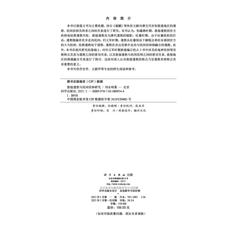 敦煌道教与民间信仰研究 9787030809544 刘永明
