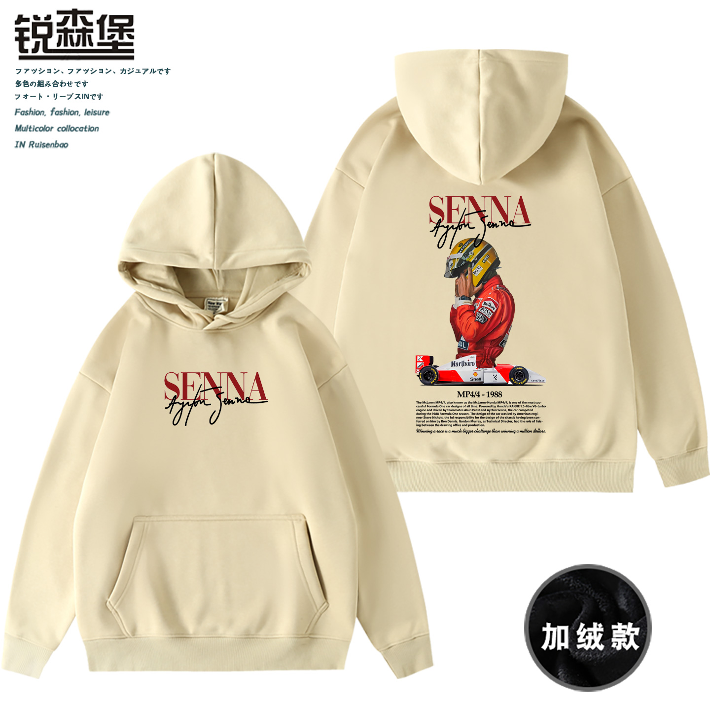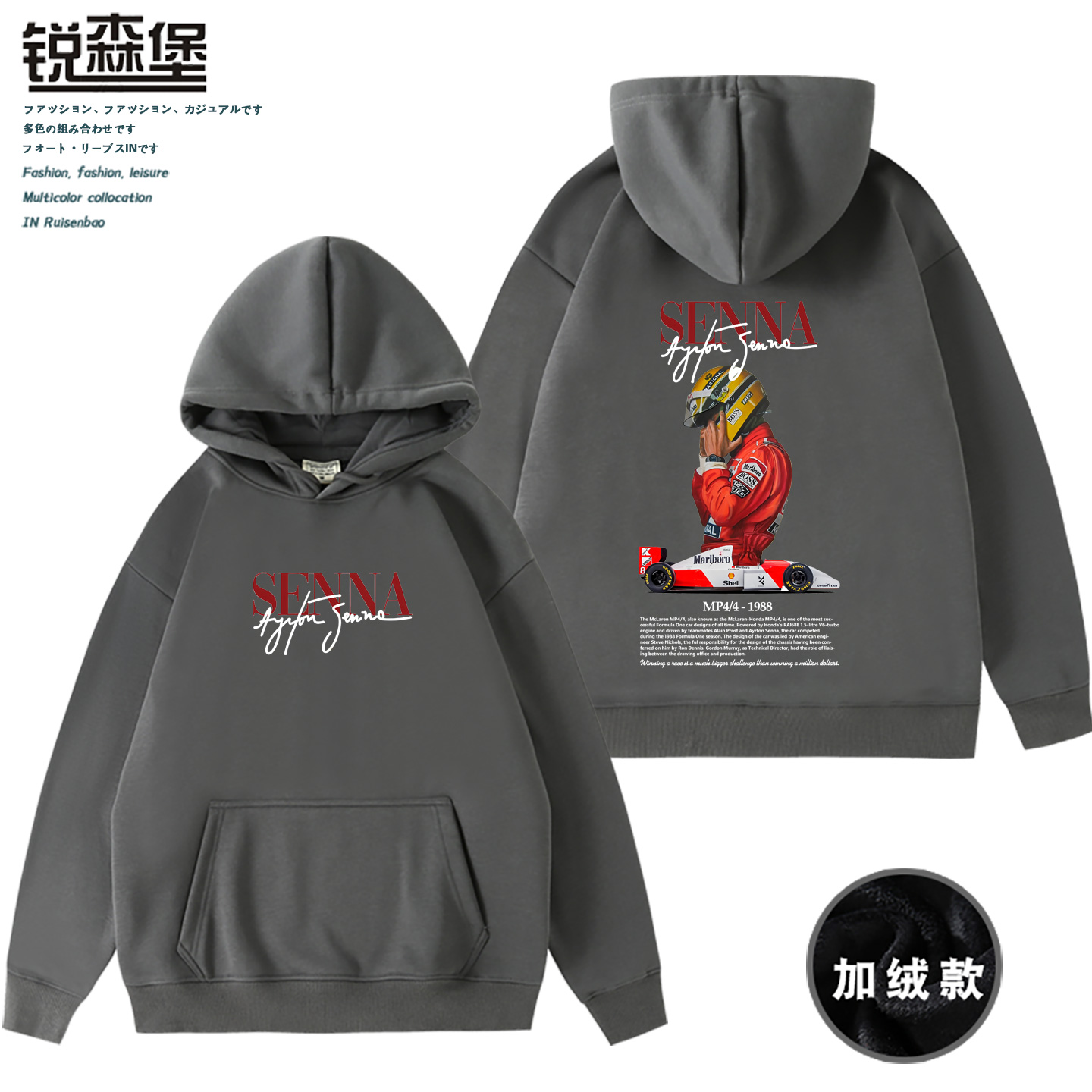 车神塞纳F1赛车纪念周边联名迈凯伦连帽卫衣秋冬加绒男士 百搭宽松