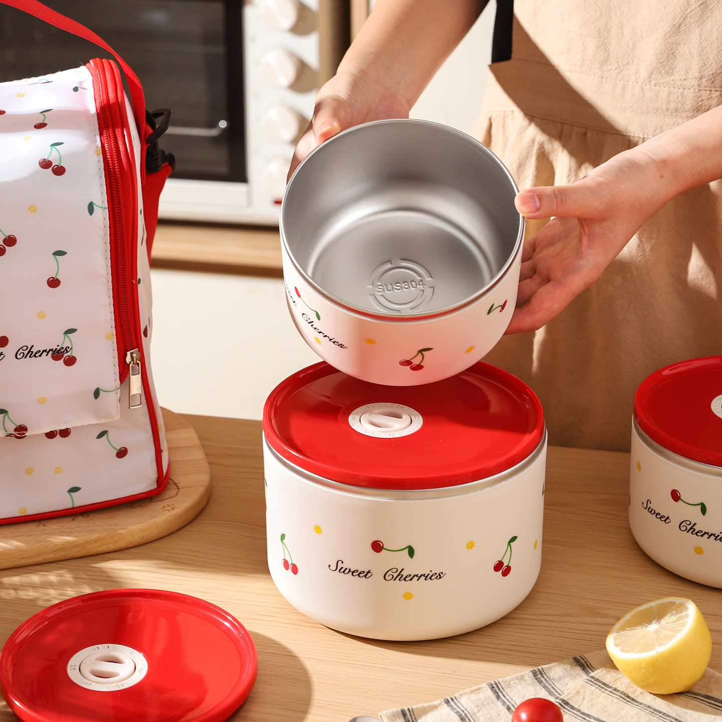 舍里小樱桃饭盒上班族学生带饭不锈钢密封保温盒微波炉加热便当盒