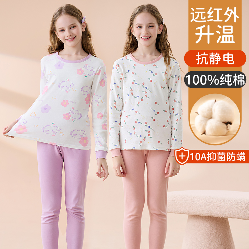 女初高中学生校服内搭保暖内衣男童棉毛衫 青少年纯棉秋衣秋裤 套装