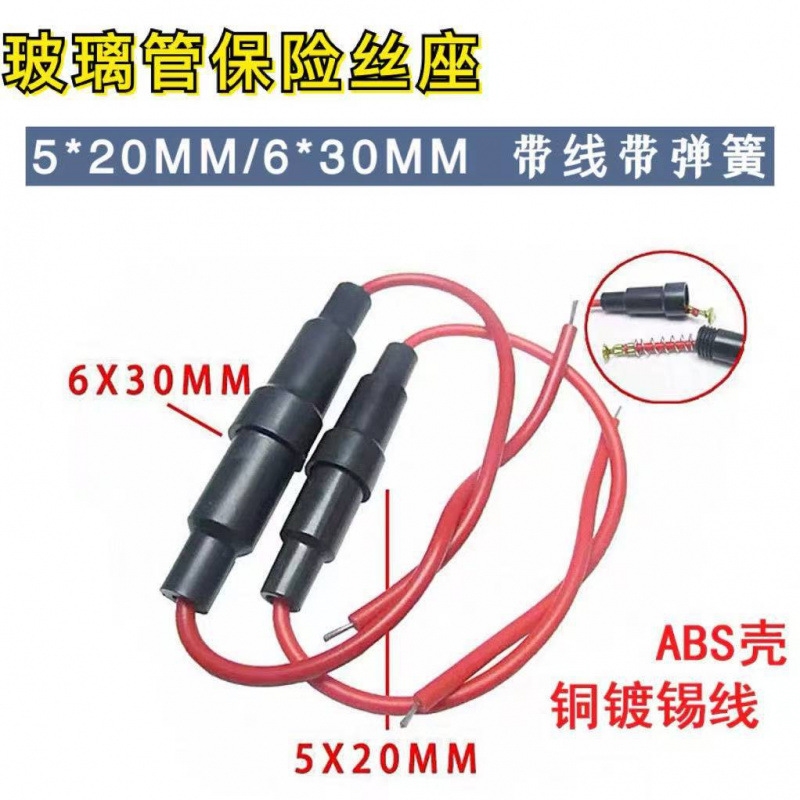 玻璃保险丝管套座5X20熔断器带线底座带弹簧BLXA夹保险管盒子FUSE