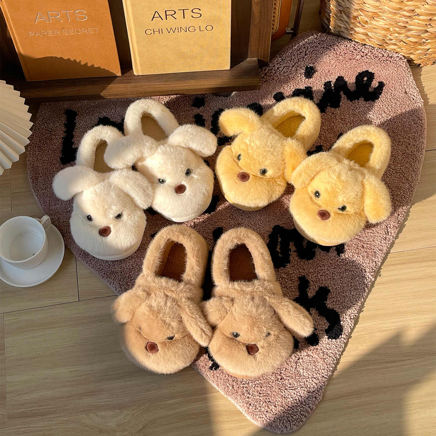 冬季 室内居家防滑保暖毛绒情侣棉鞋 女包跟2025新款 可爱小狗棉拖鞋