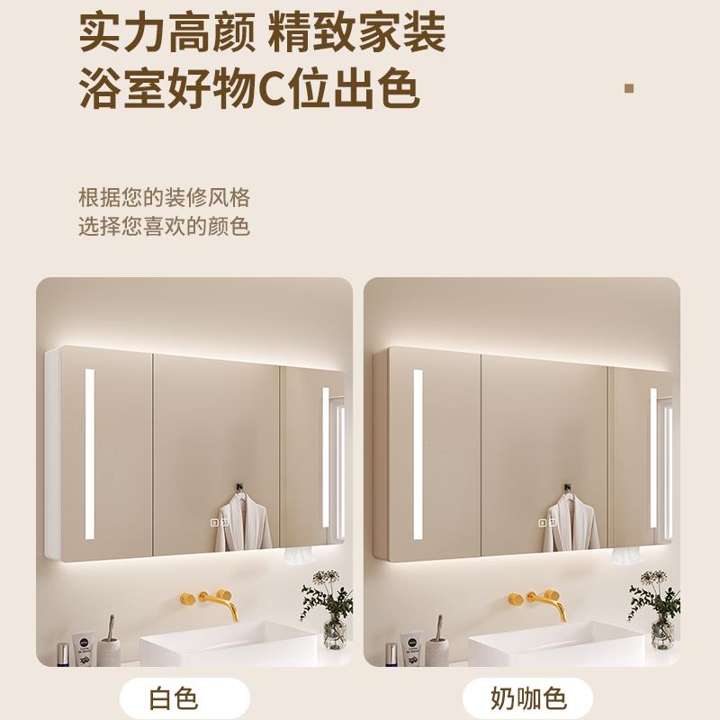 橡木烤漆浴室智能镜柜圆角卫生间镜子洗手间挂墙式 带灯储物带背板