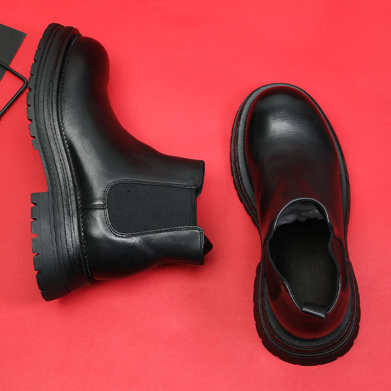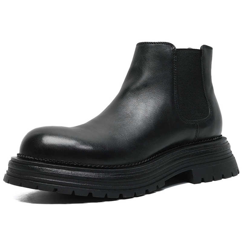VIFIRFAR厚底增高马丁靴男2025秋冬季 头层牛皮黑色大头皮靴 新款