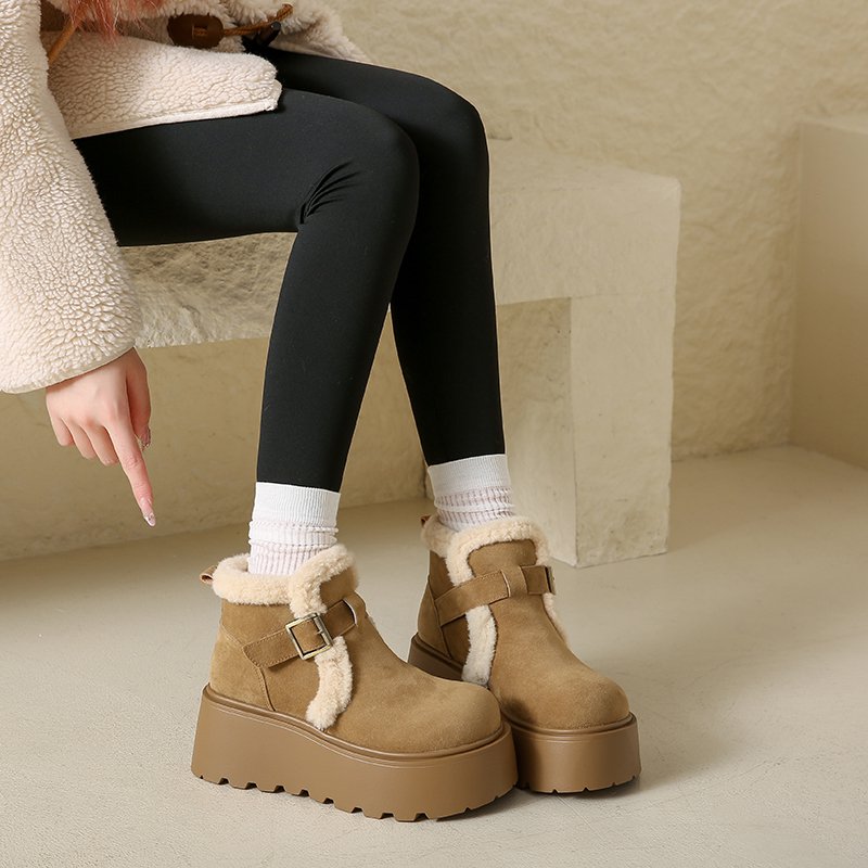 雪地棉鞋 冬季 2025新款 厚底增高7CM小个子雪地靴女加绒加厚勃肯鞋