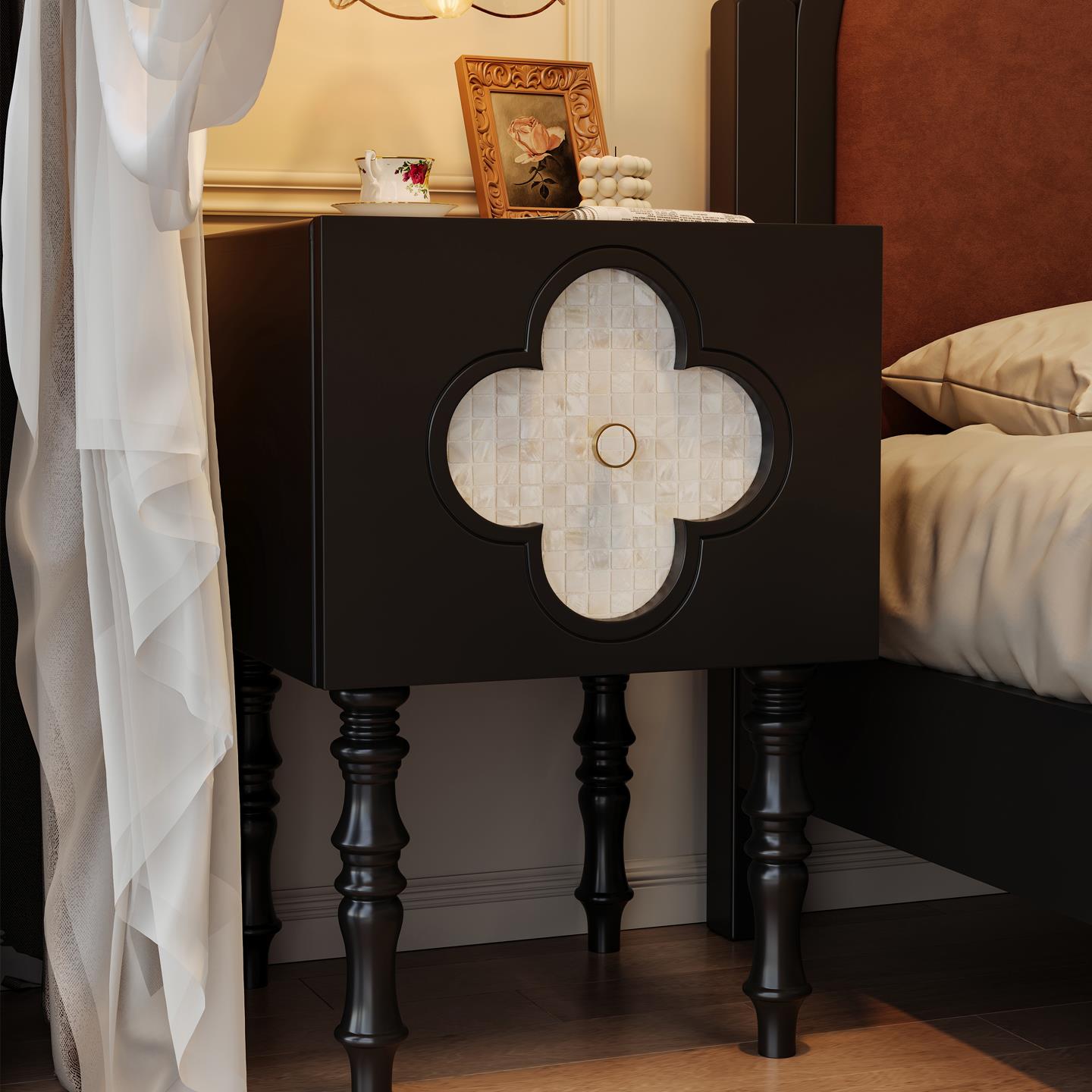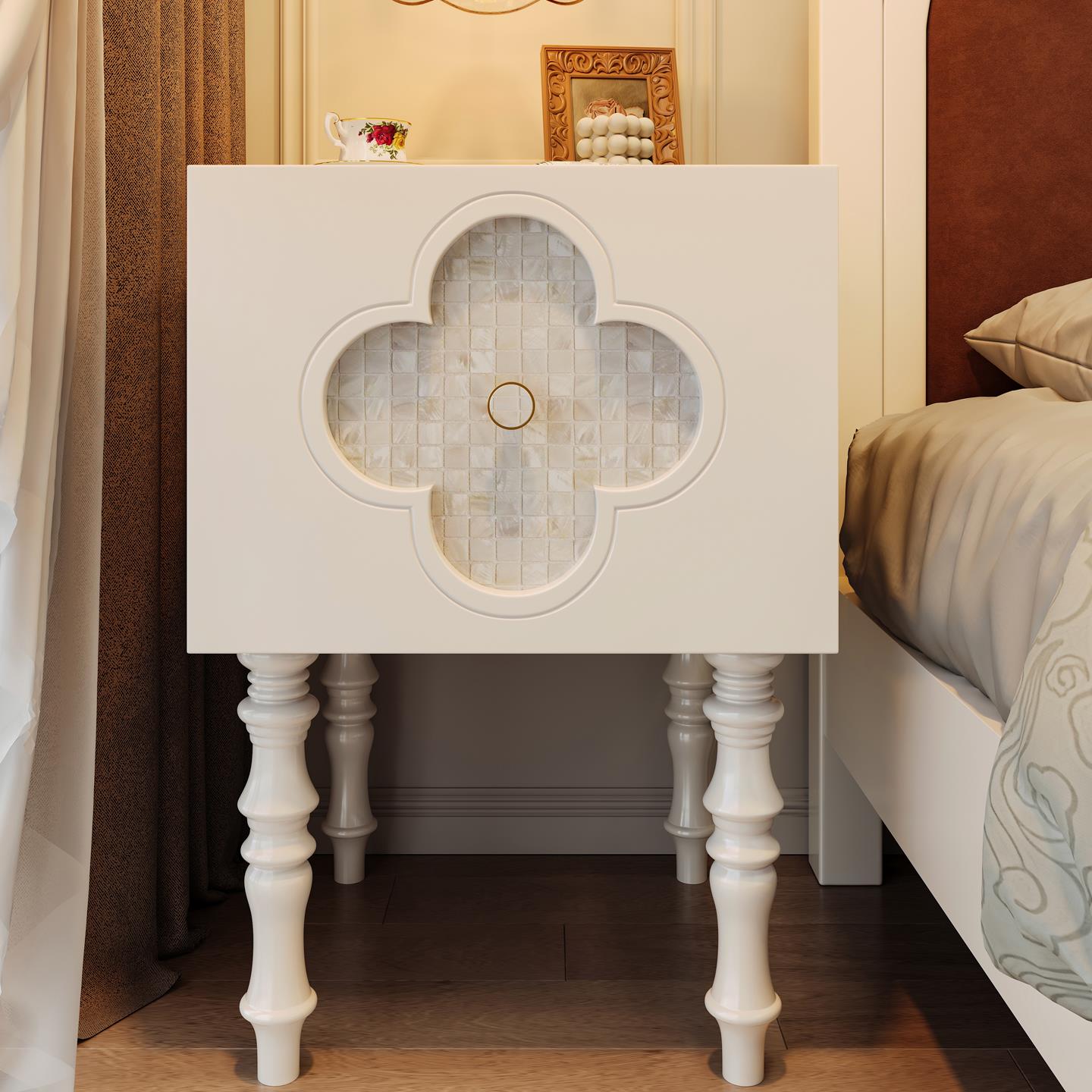 实木床头柜家用卧室小型床边侧边柜法式 奶油风白色收纳储物置物柜