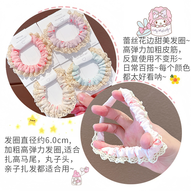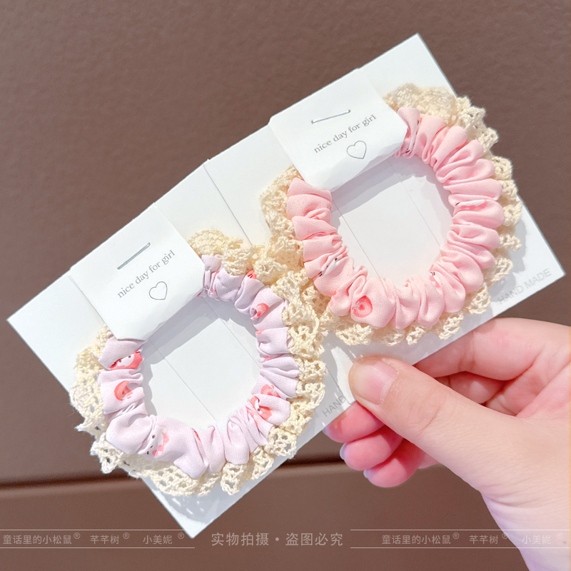 儿童布艺花边头绳女童扎高马尾发绳公主可爱小肠发圈不伤发橡皮筋