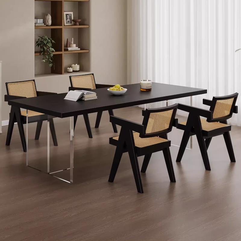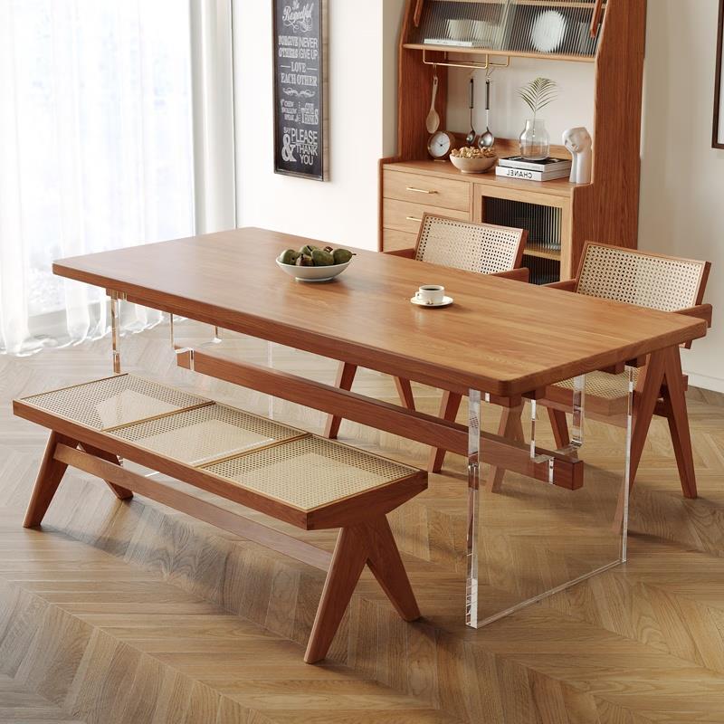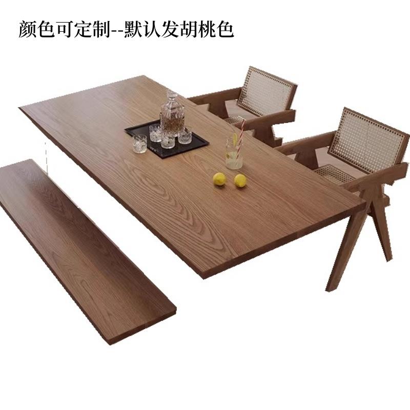实木白蜡木餐桌亚克力悬浮茶书电脑桌面板榆木炭化松木原木板定制