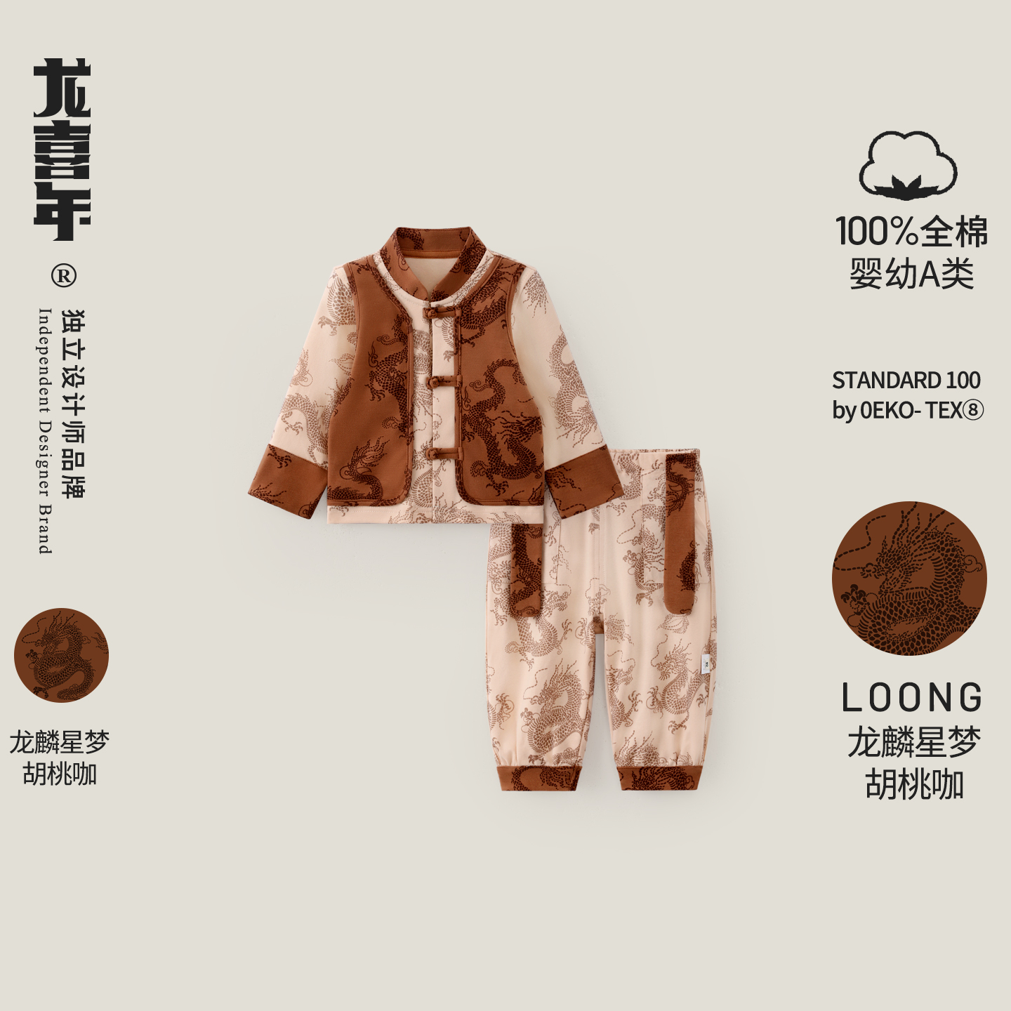 秋季 龙喜年周岁男宝宝礼服新中式 套装 长袖 国风百天百日宴纯棉唐装