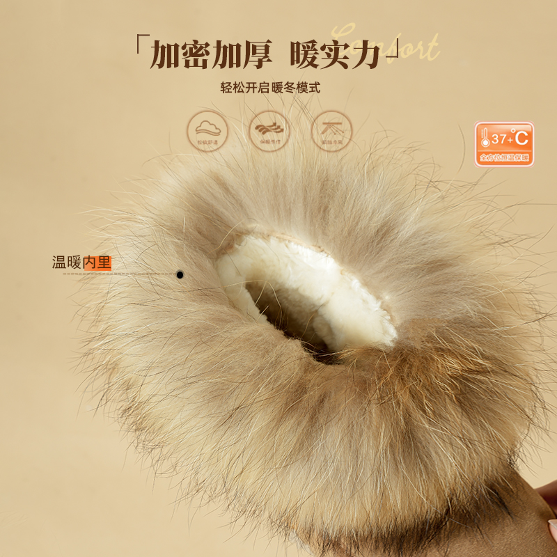 皮毛一体短筒加厚毛毛棉鞋 秋季 子 狐狸毛牛皮雪地靴女2025新款 F21