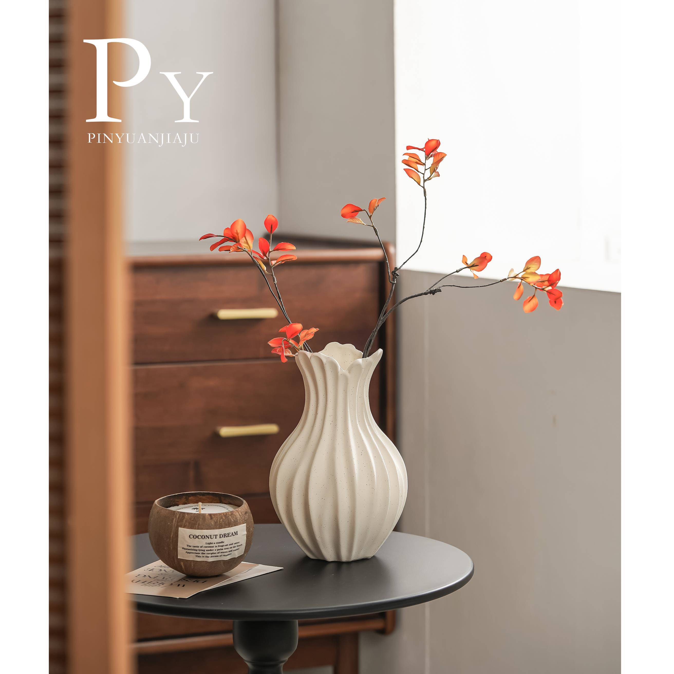 现代简约复古侘寂扇子花瓶仿真花个性 高颜值陶瓷艺术花器民宿摆件