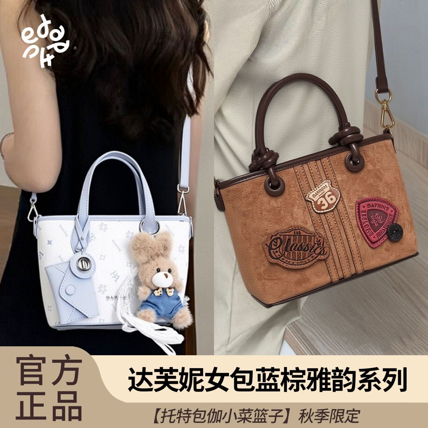 斜挎托特包女通勤手提小菜篮子 Daphne达芙妮时尚 蓝棕雅韵系列